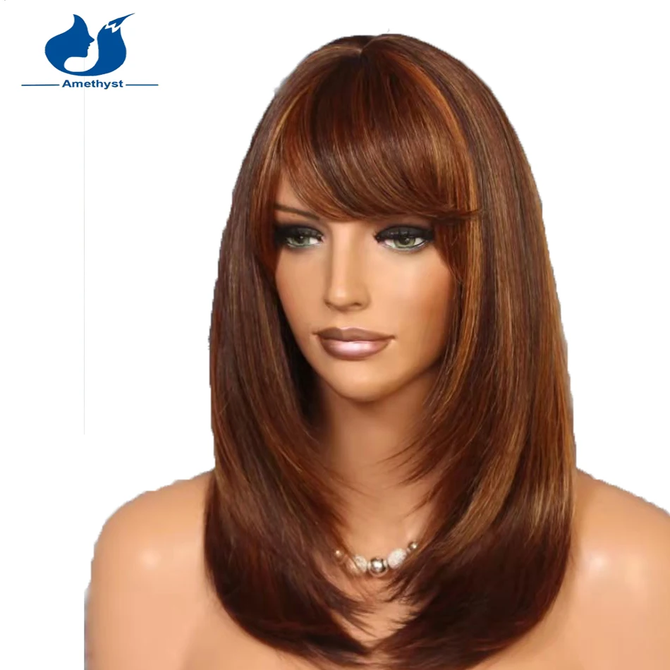 Аметист медовый блонд хайлайтер Кружева передние парики с челкой 13...