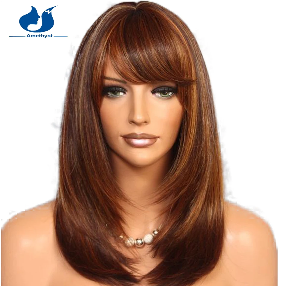 Парики из человеческих волос с аметистом 13x 4, с челкой