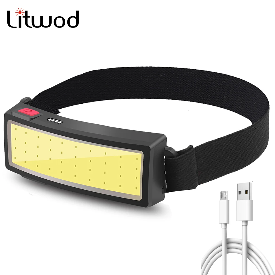 Светодиодный налобный фонарь, портативный COB фонарь со встроенным аккумулятором, зарядка через USB, для работы