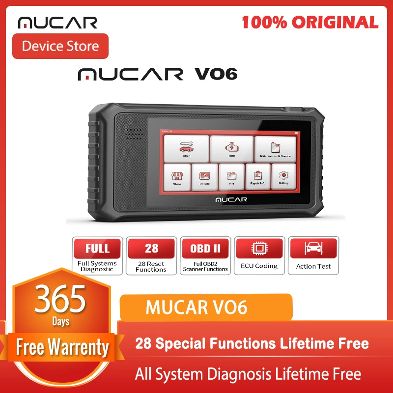 Диагностический сканер MUCAR VO6 obd2, полная система, полное программное обеспечение, кодирование ECU, активное тестирование, 28 сбросов, бессрочные Бесплатные обновления, диагностические инструменты