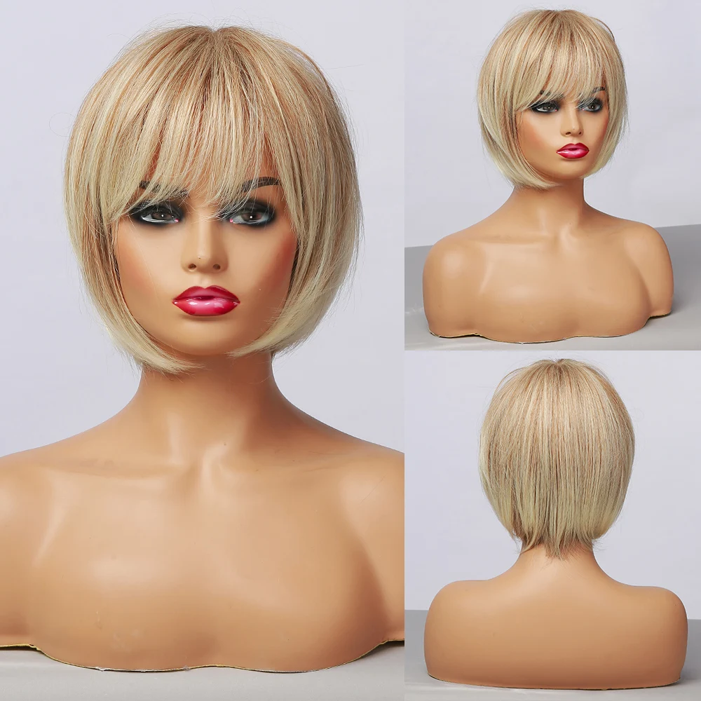 Парики короткие прямые с челкой, синтетические светлые повседневные...