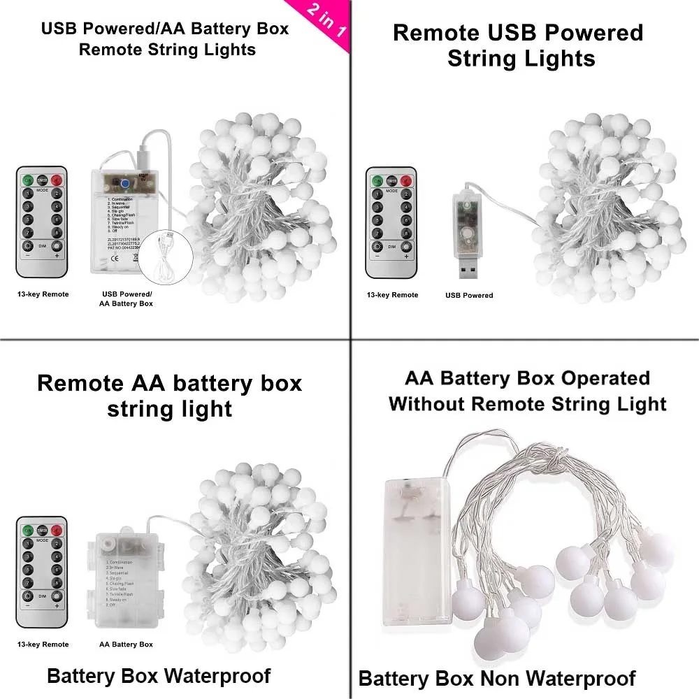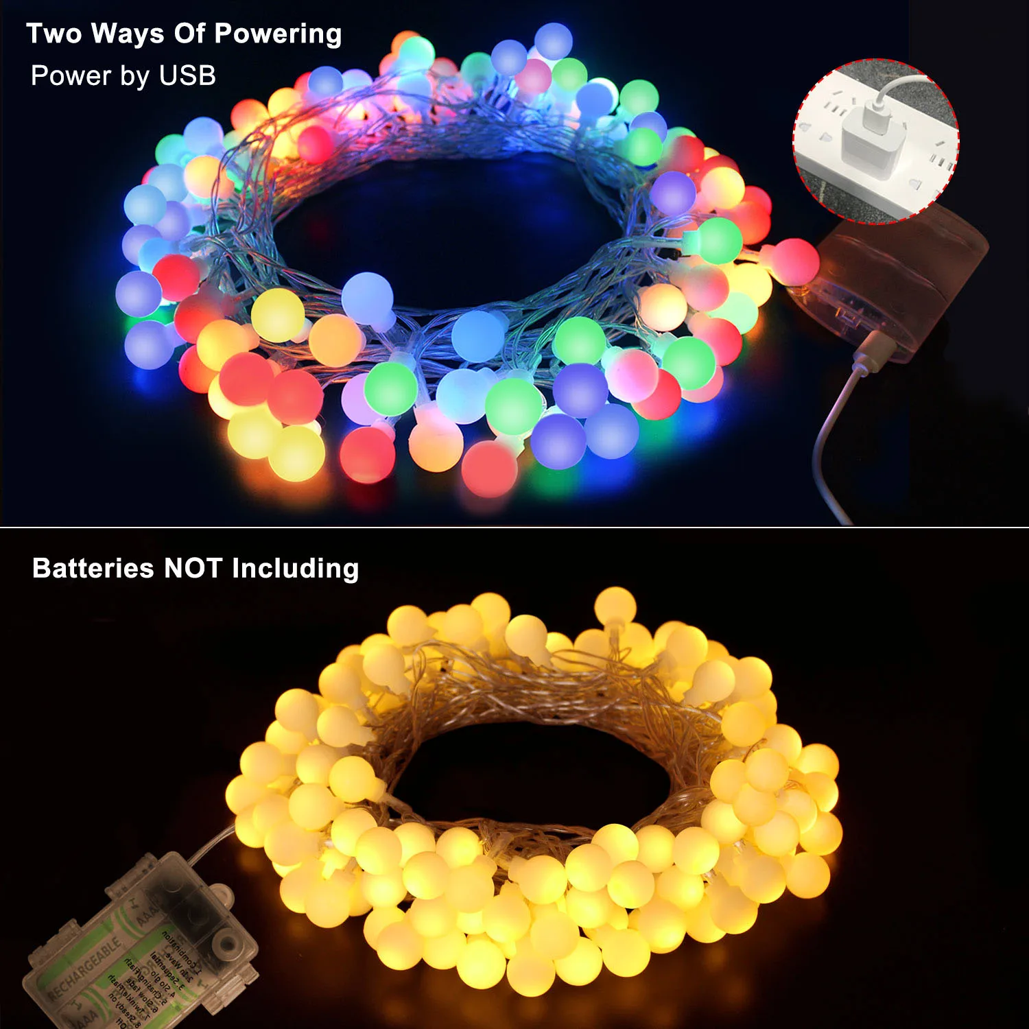 Светодиодная гирлянда с шариками, питание от USBаккумулятора, водонепроницаемая уличная гирлянда, украшение для рождества, праздника, свадьбы, вечеринки