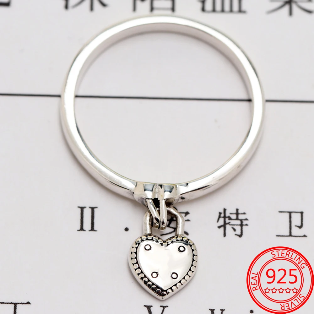 Серебряное кольцо в виде висячего замка в форме сердца из стерлингового серебра S925