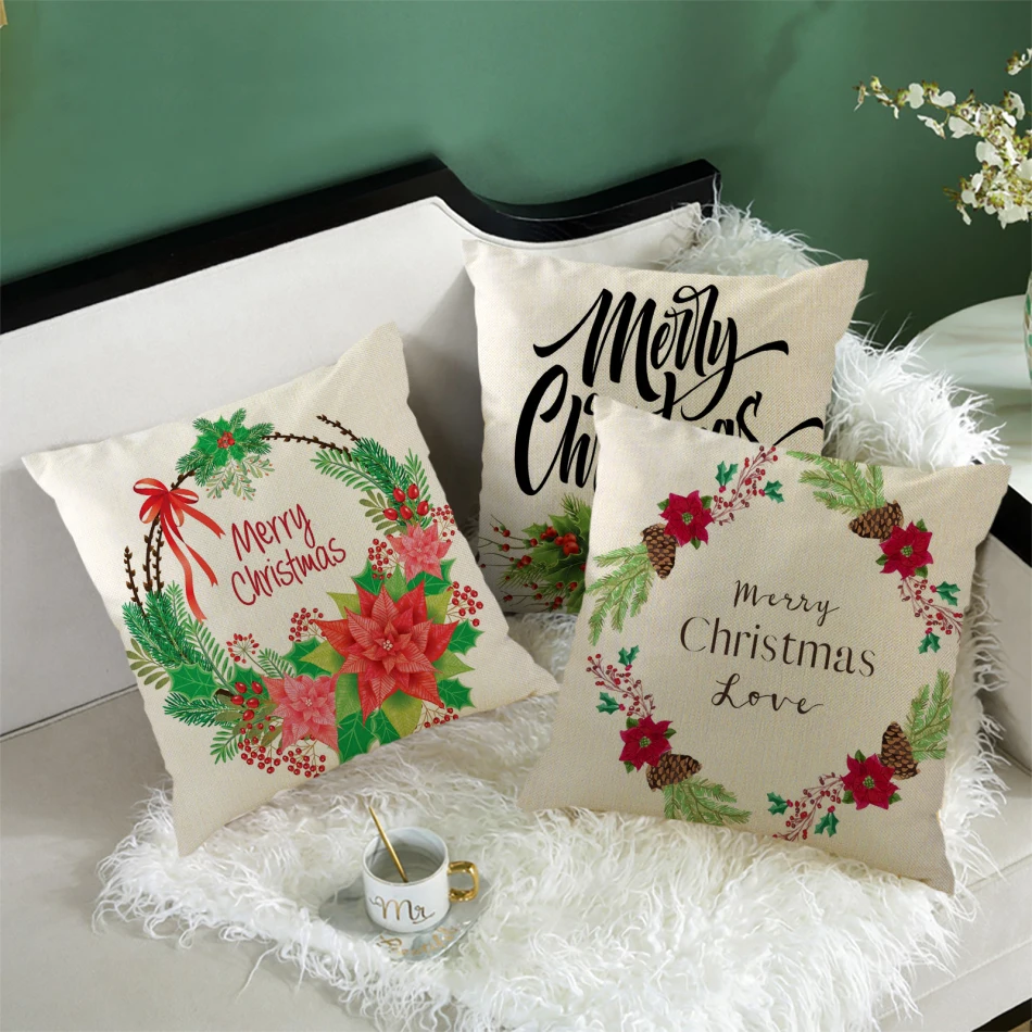 Рождественская льняная подушка, чехол для дивана, окна, сиденья, подушки с цветочным принтом животных