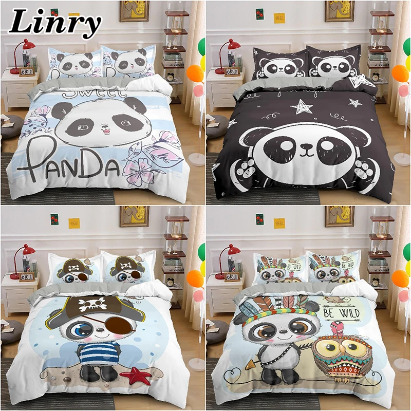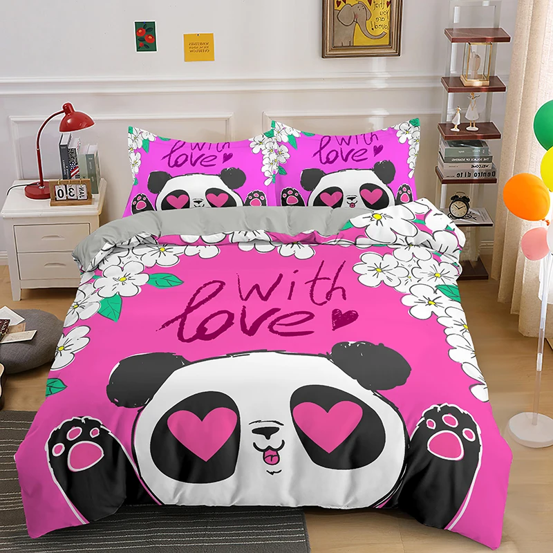 Комплекты постельного белья с мультяшным сердцем пандой, милые комп...