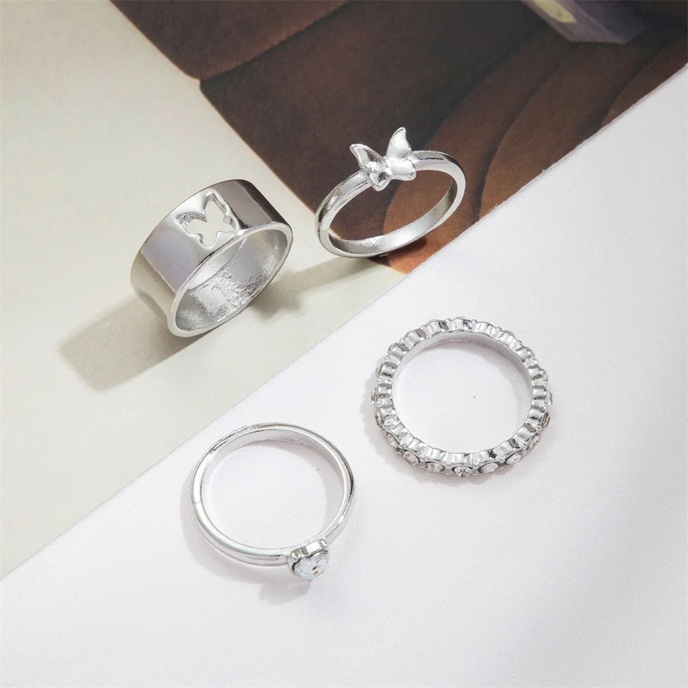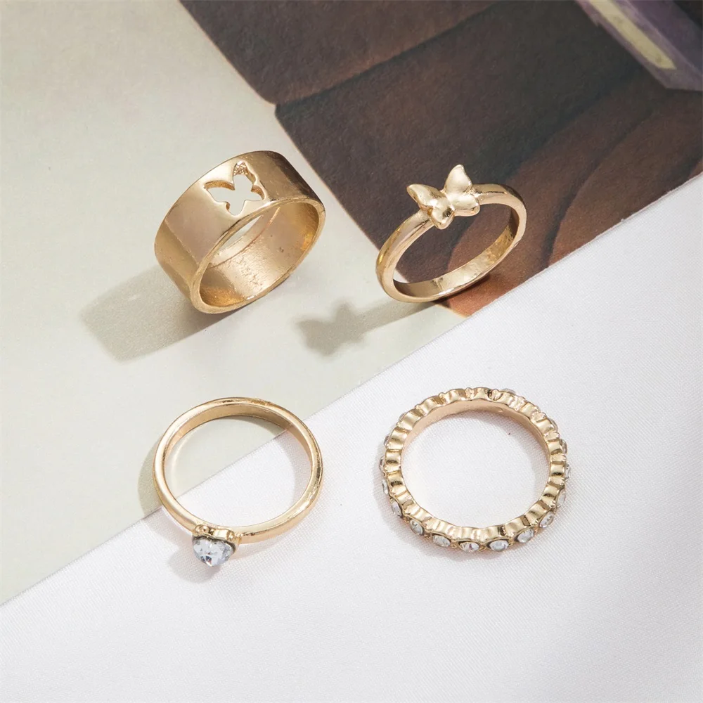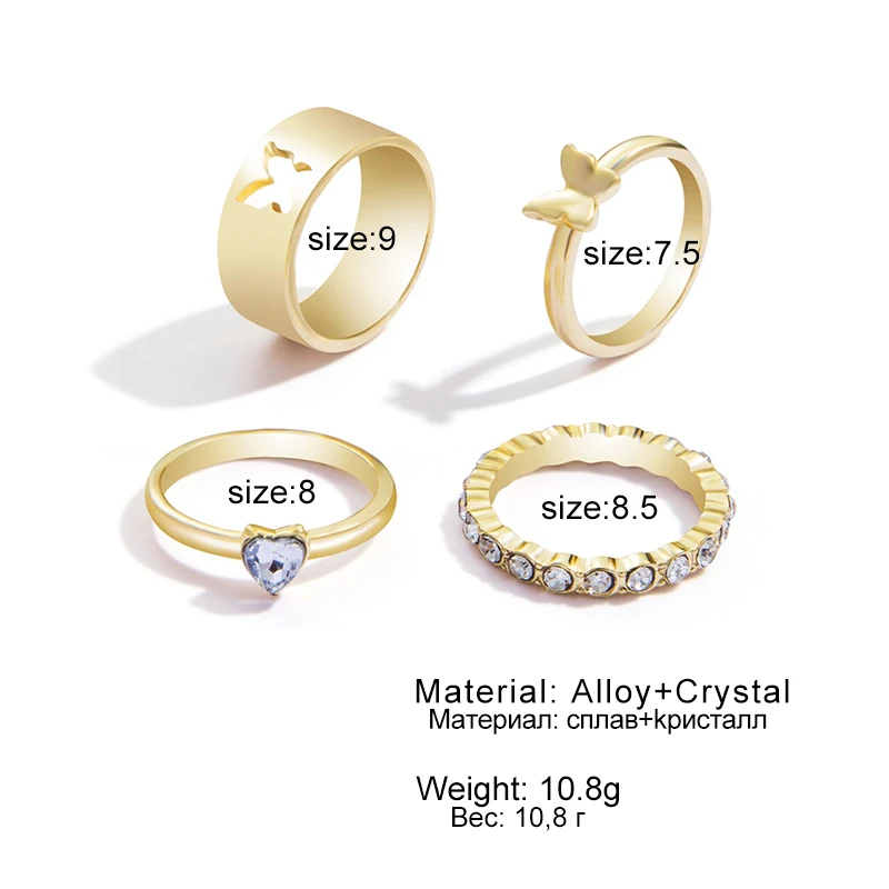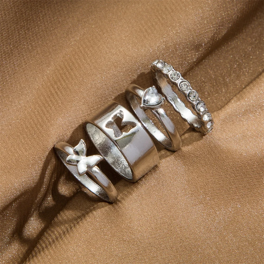 4 шт. Модные кольца-бабочки с бриллиантами для женщин и мужчин, пара колец для влюбленных, набор колец дружбы, помолвки, свадебные открытые кольца, ювелирные изделия 2021 года