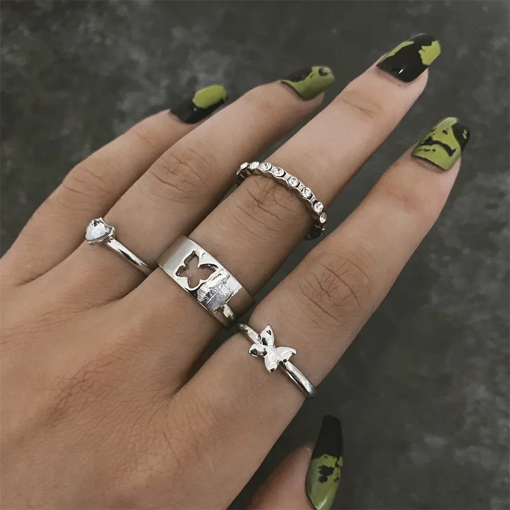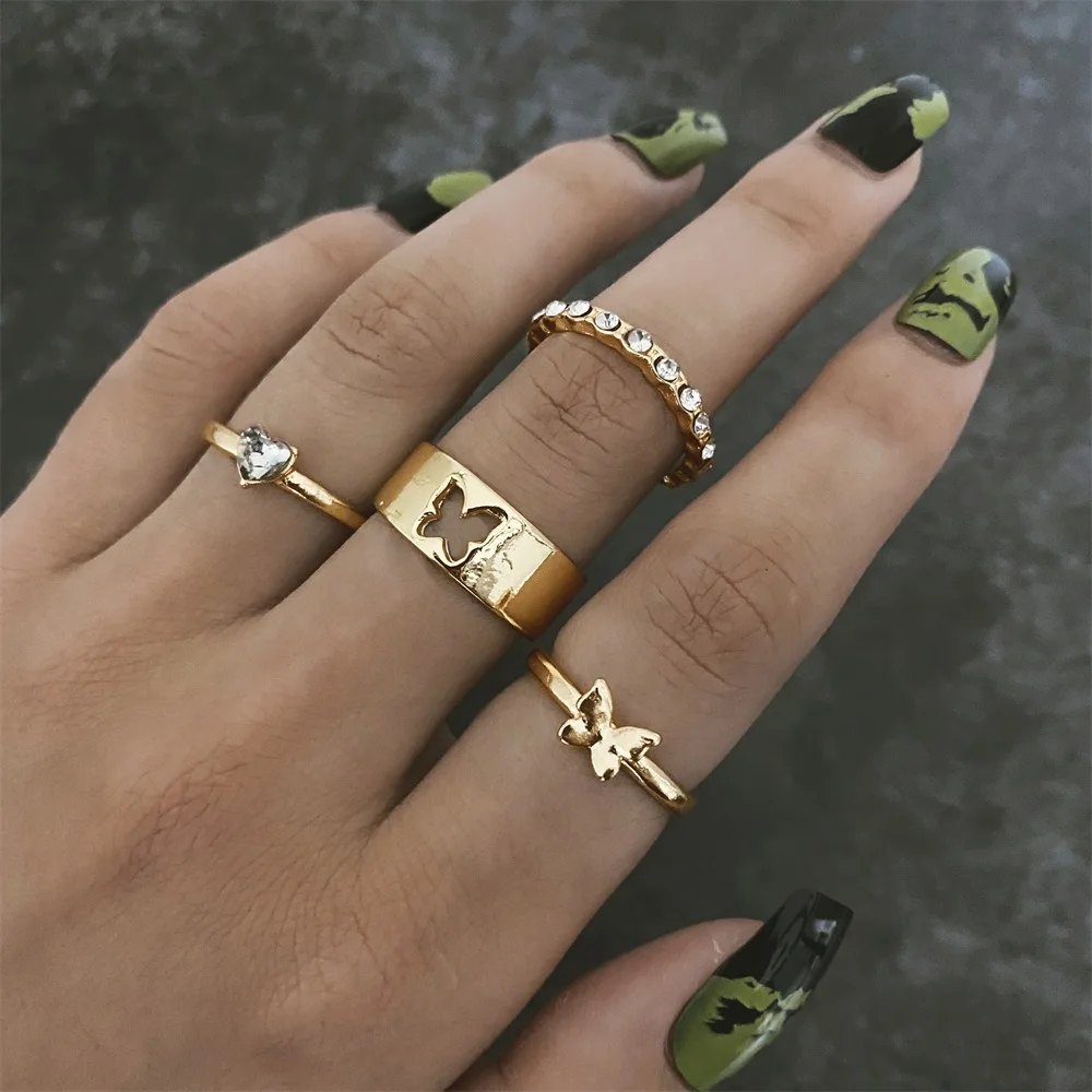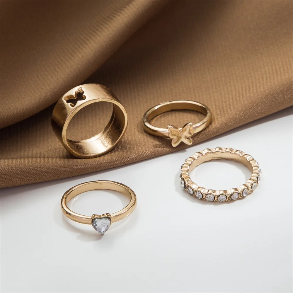 4 шт. Модные кольца-бабочки с бриллиантами для женщин и мужчин, пара колец для влюбленных, набор колец дружбы, помолвки, свадебные открытые кольца, ювелирные изделия 2021 года