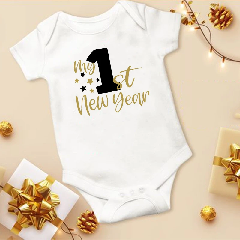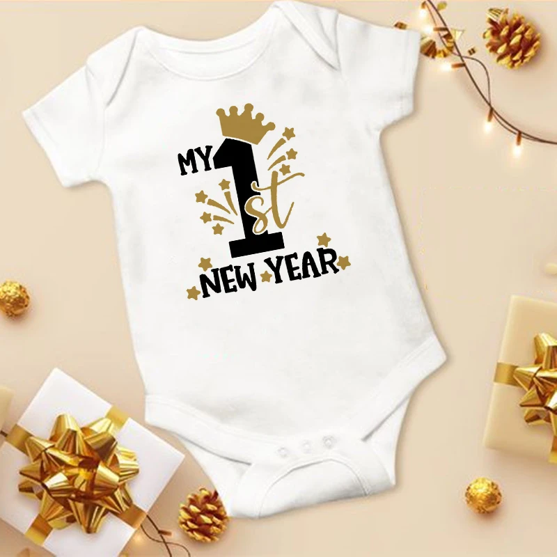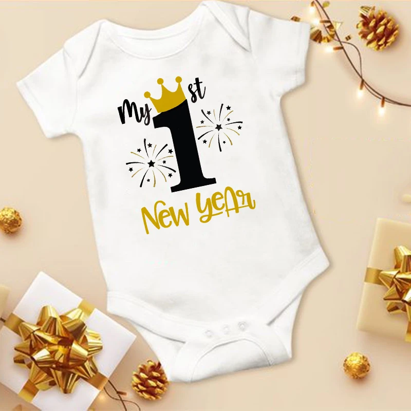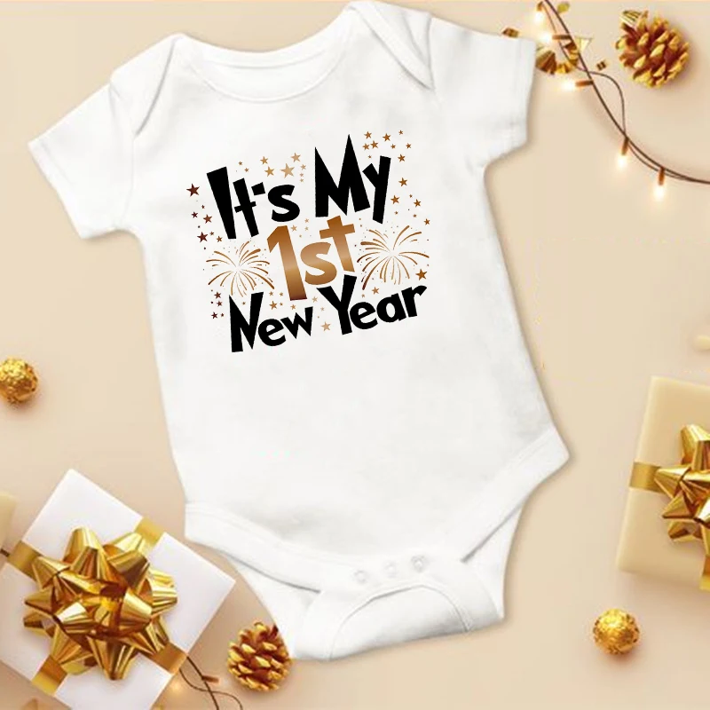 Мой 1-й новый год печати новорожденных детские комбинезоны с коротким рукавом комбенизон Детский боди для мальчиков и девочек новый год Ropa одежда боди