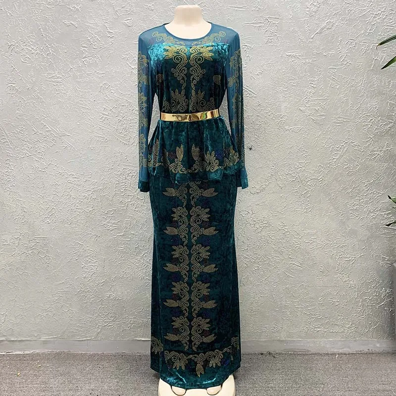 Осенне-зимнее модное элегантное платье в африканском стиле богатый базин со стразами бархатное вечернее длинное платье для женщин в европейском стиле сексуальное вечернее платье