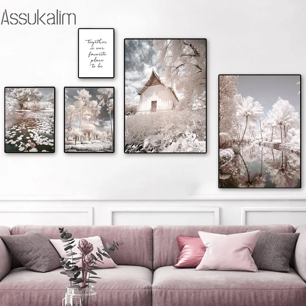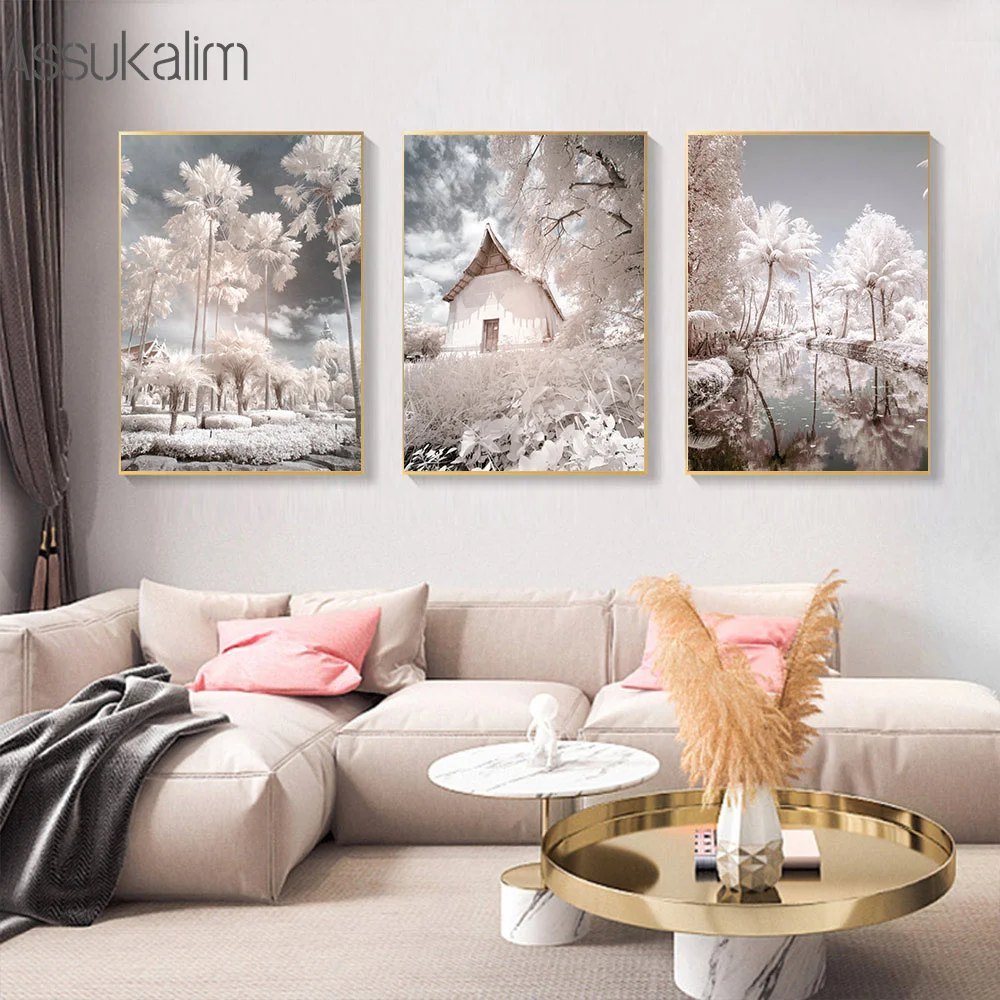 Природный пейзаж, холст, художественный плакат, пальма, лес, живопись, дом, фотография стены в скандинавском стиле для украшения гостиной