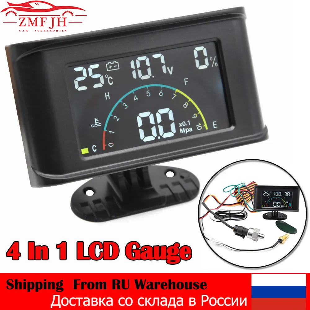 4 в 1 ЖК Манометр вольтметр M10 датчик температуры воды 18NPT манометр масла для DC 9-36 в цифровой автомобильный манометр
