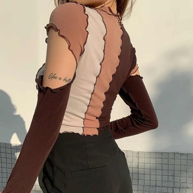 Укороченный топ с вырезами и оборками для женщин, пуловеры Y2K, кор...