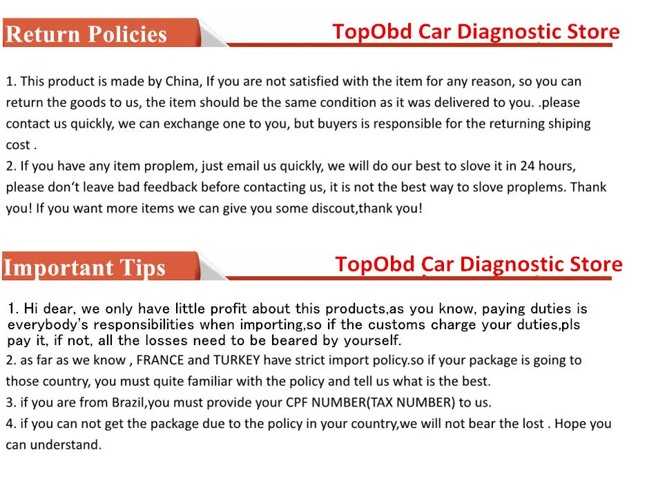 И платить налоги-это обязанность покупателя. Таким образом, если вы отправите товар через DHL, fedex, ups или ems, когда товары прибудут в вашу страну, таможня вызовет вас, чтобы сделать очистку, чтобы оплатить налоги, тогда вы можете получить посылку.