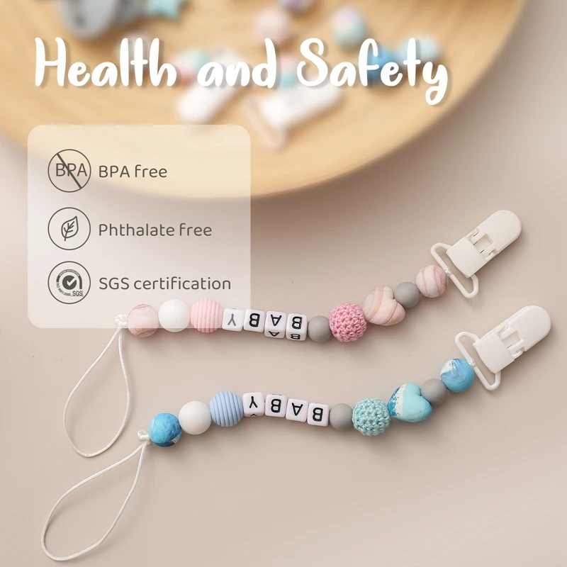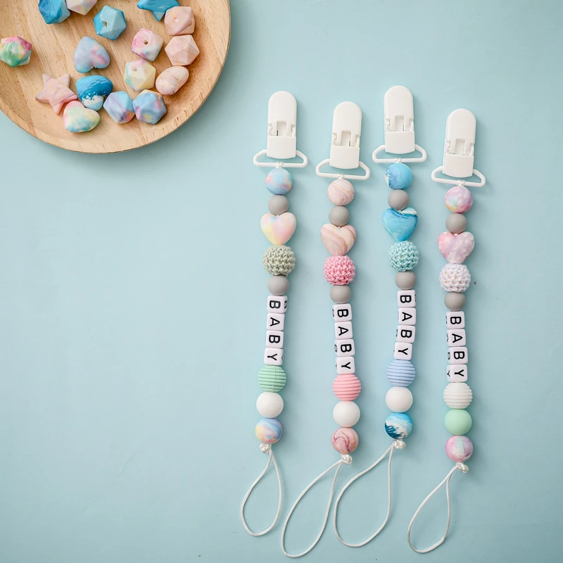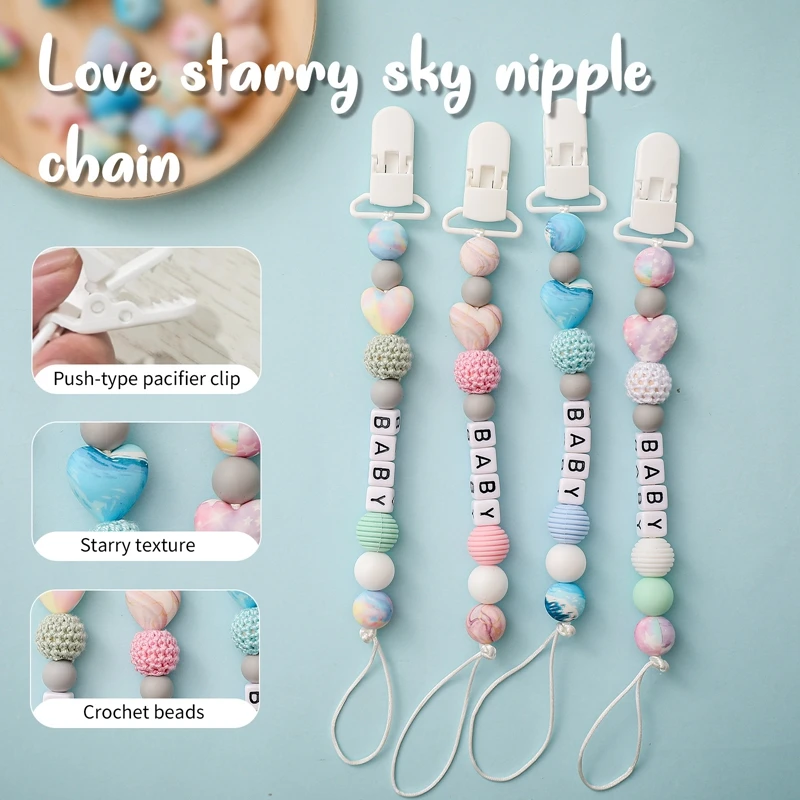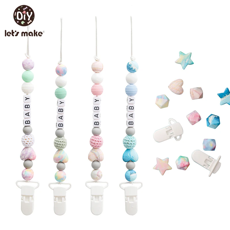 Давайте сделаем детские силиконовые соски звездное небо цепь пищевого силикона соски клип BPA бесплатно сердце Прорезыватель настраиваемое имя