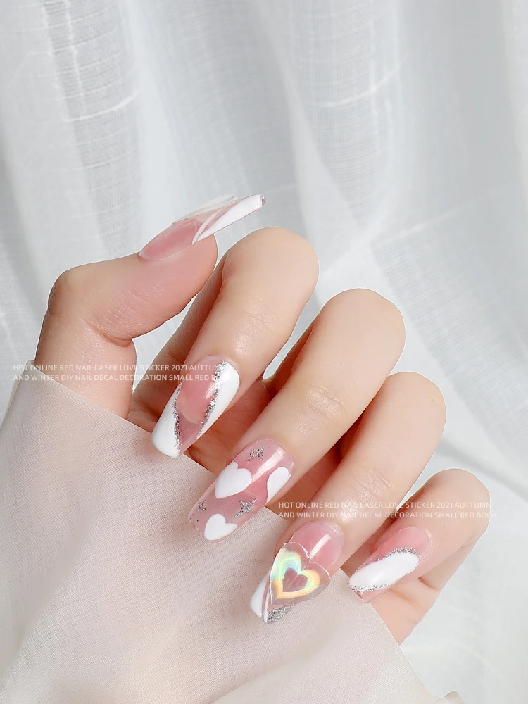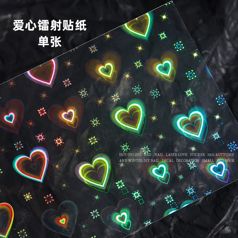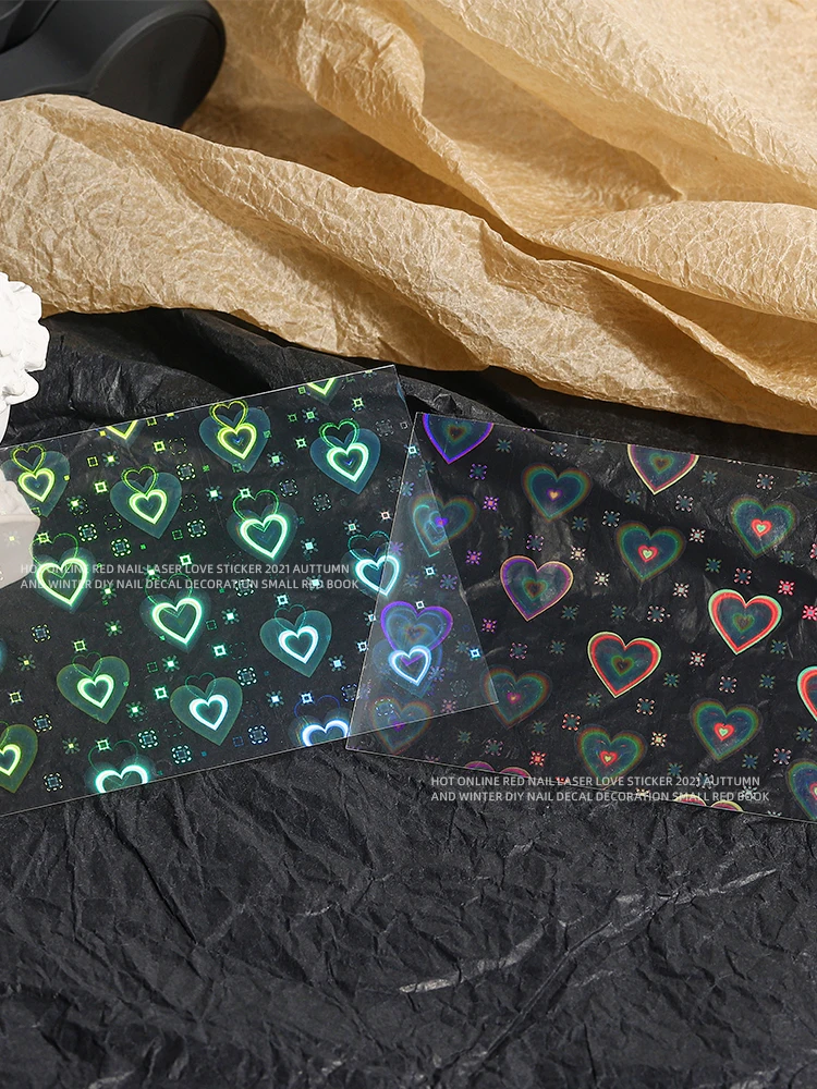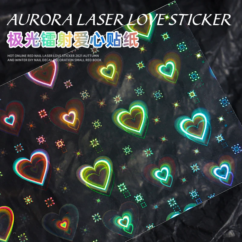 Лазер для дизайна ногтей Сердце Звезда полые красочные блестящие любовь градиентные наклейки самоклеящиеся слайдеры обертывания маникюрные украшения