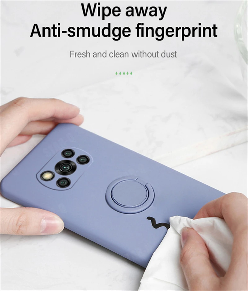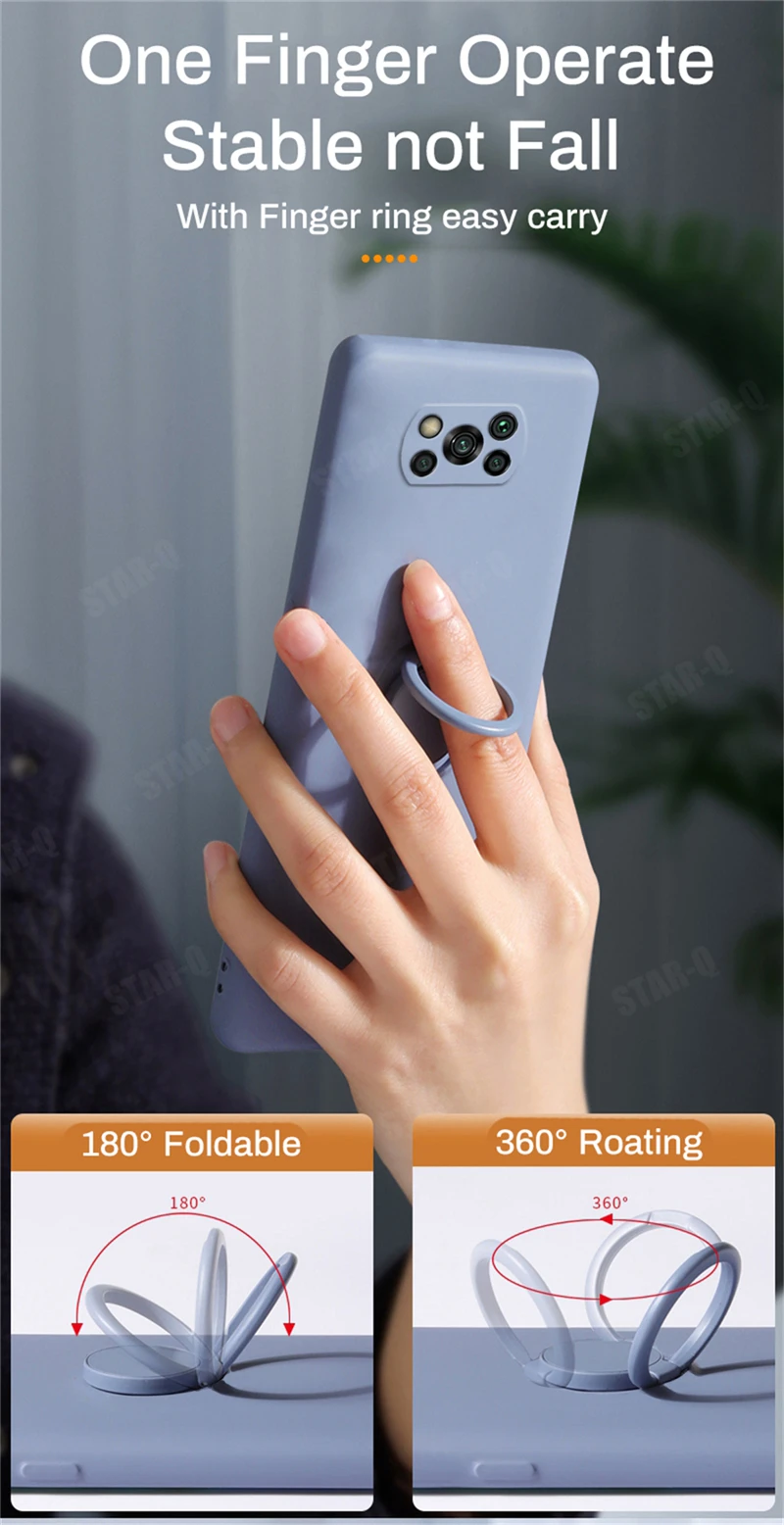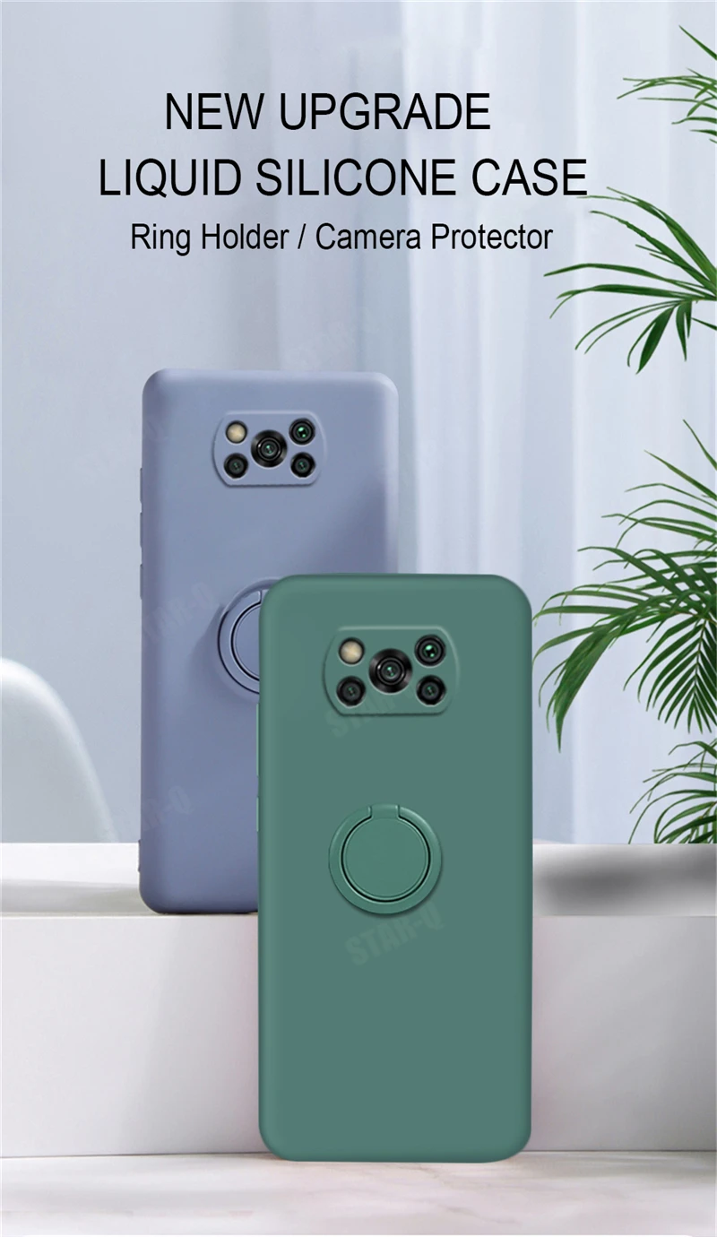 Жидкий силиконовый чехол Pocox3 с кольцом-держателем для телефона X...