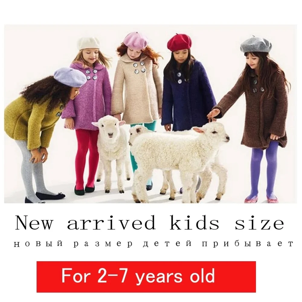 Детский шерстяной берет, однотонный, для мальчиков и девочек, зимни...