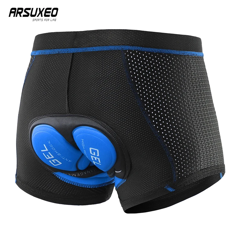 ARSUXEO противоударные велосипедные шорты 5D гелевые подкладки мужские трусы Велосипедное нижнее белье мягкие дышащие нижнее белье для горных и дорожных велосипедов
