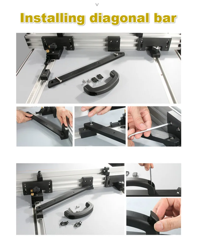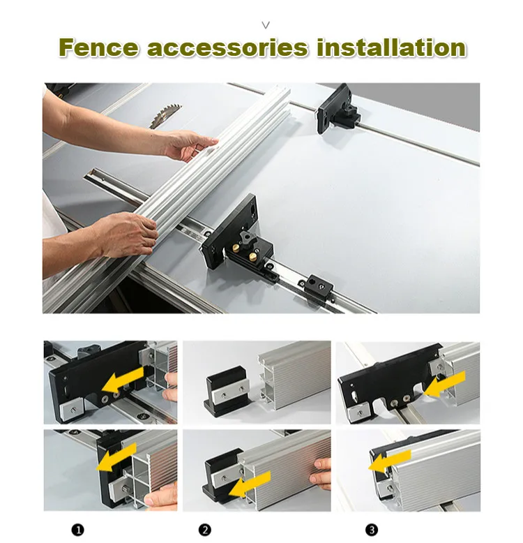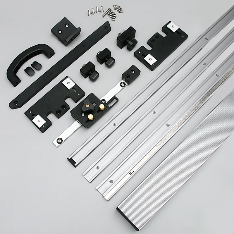 Система забора для настольной пилы Система поставляется с: 1 шт. 800 мм (1000 мм) длинный забор, 80 мм Высота и 45 мм ширина. 1 шт. 940 мм t-образный с Измерение масштаб 12,8 мм Высота и 45 мм ширина. 1 шт. 940 мм Регулярные Т-образная дорожка, 12,8 мм высота 30 мм ширина. 1 шт Т-трек 690 мм Обычный Т-трек, который идет на забор для установки перьевых досок. 1 шт. Торцевая Т-бар и аксессуары для крепления к забору и аксессуары и винты для Микрорегулировки. Эффективное перемещение забора составляет 750 мм.