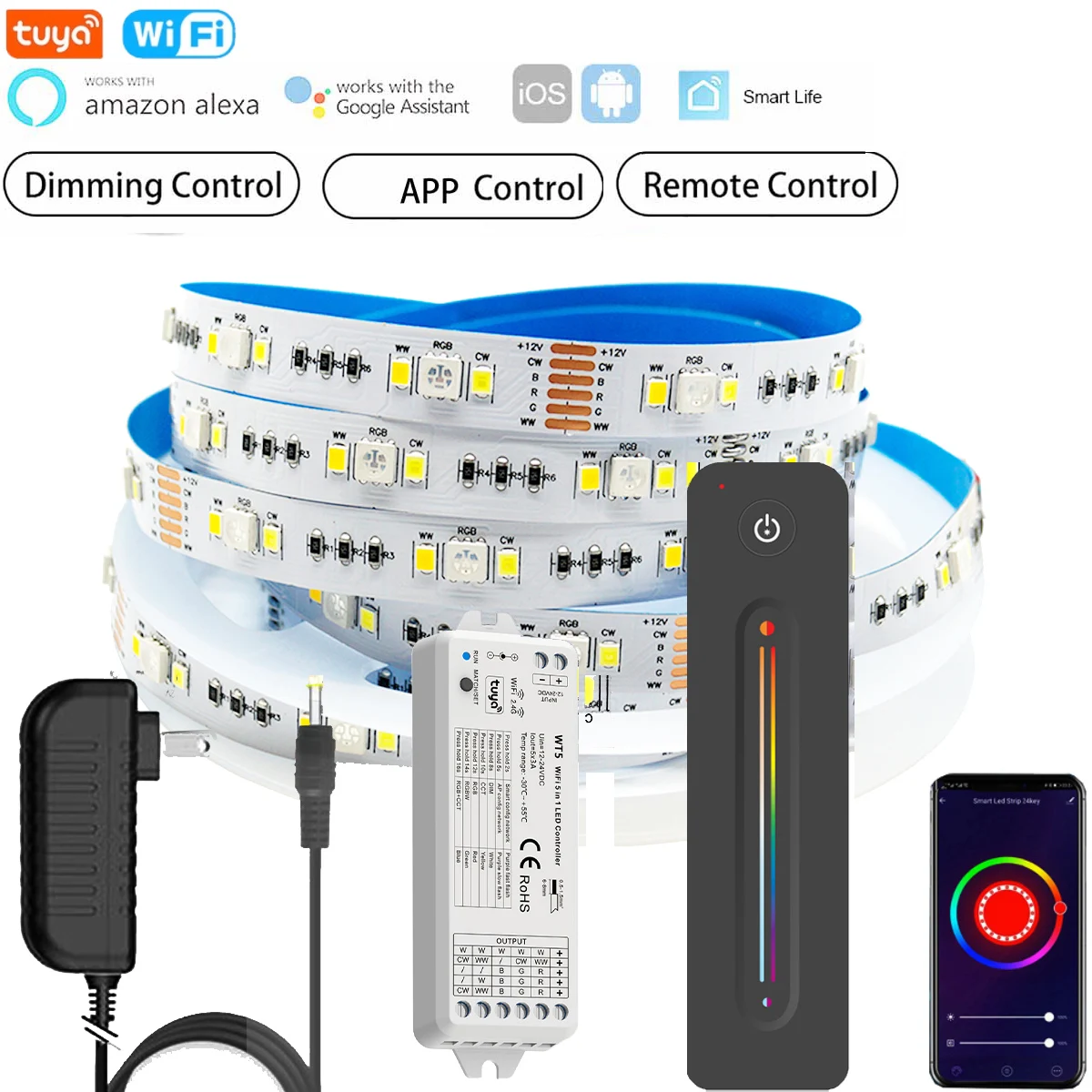 Wi-Fi WT5 + радиочастотный сенсорный пульт дистанционного управления Tuya 5-10 м 2,4 + 5050 RGBCCTRGBCW Светодиодная лента Голосовое управление для Alexa Google Home