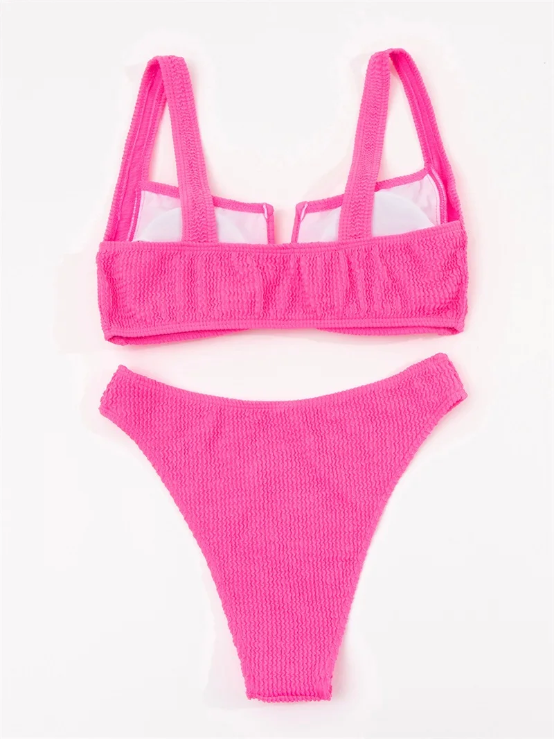 Однотонный бикини, купальный костюм в рубчик с высокой талией, женский купальник пуш-ап, привлекательный купальник с высоким вырезом и бретельками, комплект бикини 2021, женская пляжная одежда