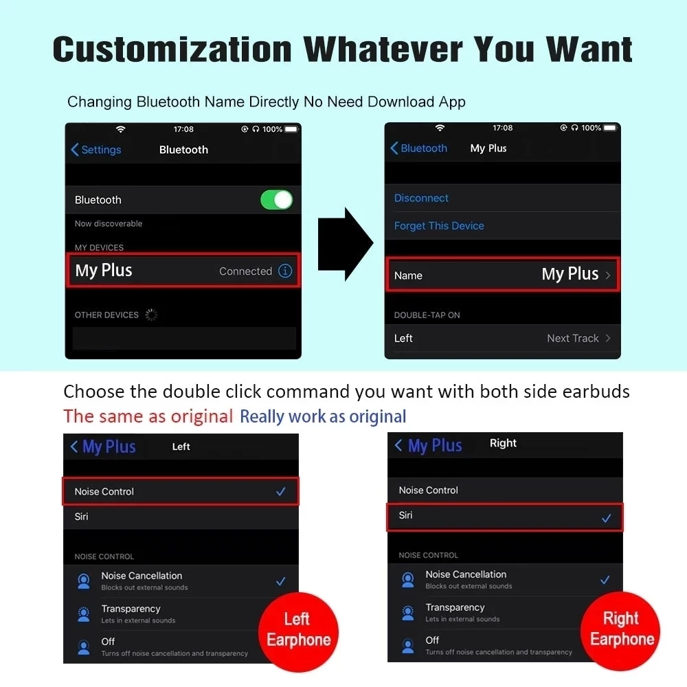 Новые особенности:1. Новейший и лучший чип Huilian A6Pro (лучше, чем чип A6 BES 1562A 1562F)2. 45 дБ Гибридный ANC действительно работает (IOS и Android)3. Новый не повреждает активное шумоподавление (усиливается постепенно)4. Гироскопическая пространственная аудио Реалистичная работа5. Настоящий «Хей Сири» от наушника mic voice assistant Siri6. Стальные вентиляционные отверстия и металлический шарнир7. Крышка обратного магнита8. Режим прозрачности (IOS и Android)9, 15 мм Большой мощный динамик 15D Super Bass10. Оп цифровой HD ANC 3 микрофон clear call11. Светильник в ушах с датчиком давления12. Всплывающий настоящий аккумулятор не изменяет13. Аудиовыход14. Изменить имя и местоположение15, ''* Новый * всплывающий сопряжение окна16. Время прослушивания музыки 5-7 часов17. Беспроводная зарядка QI18. Отдельный Левый наушник и правый наушник19. Автоматическое включение/выключение20. Предыдущая песня/следующая песня/паузаЕсли вам нужно больше фотографий, пожалуйста, свяжитесь с нами!