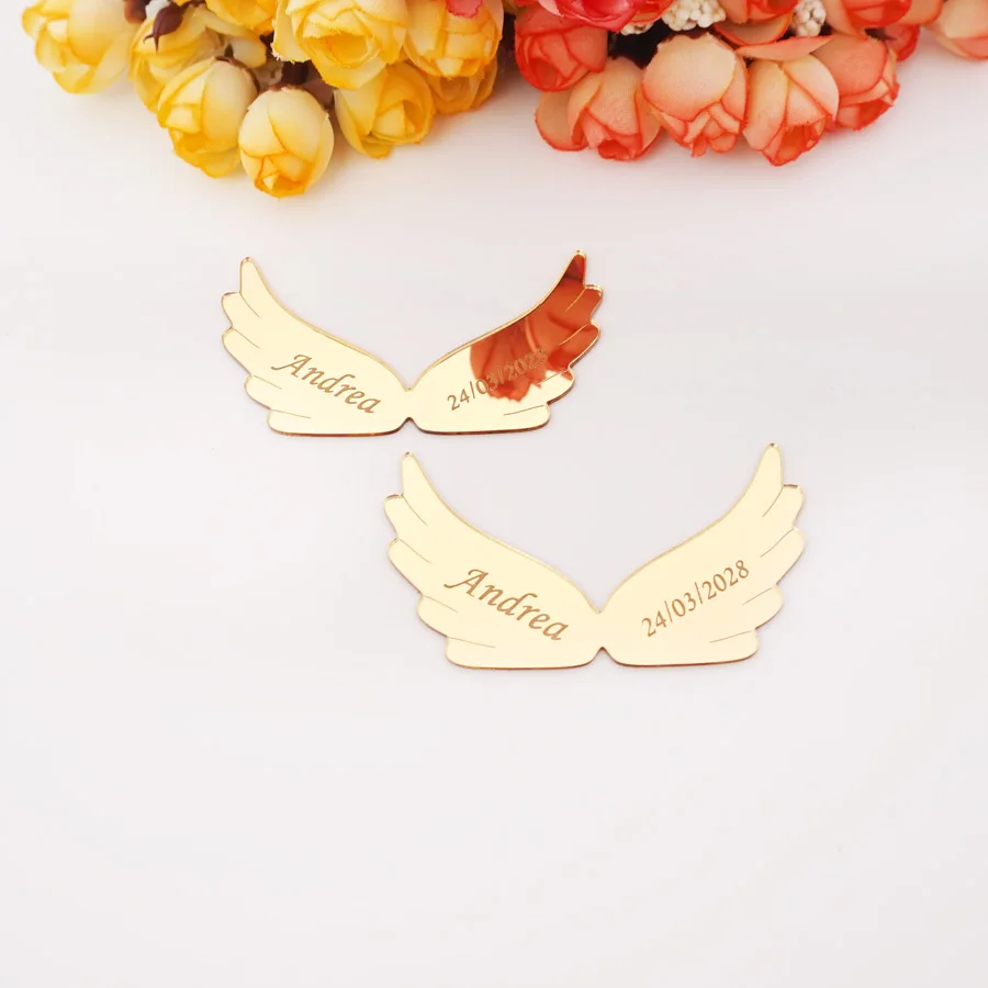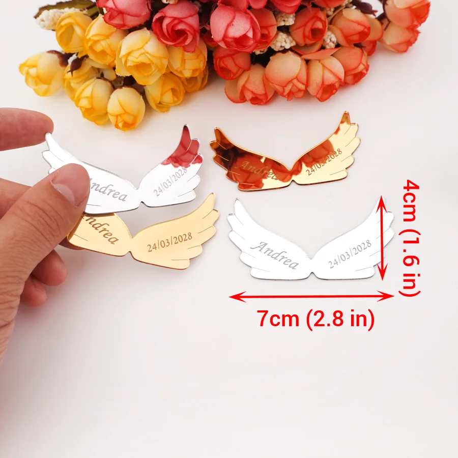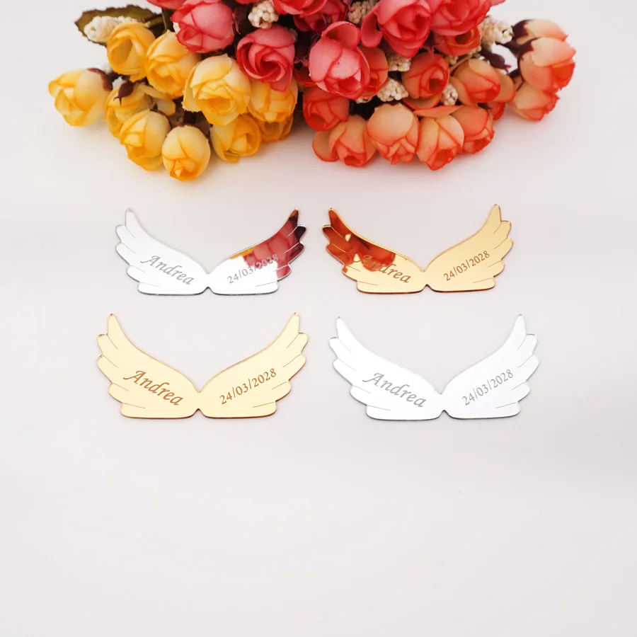 Пользовательские акриловые зеркальные Крылья ангела, 30 шт., вырезанные имя и дата, персонализированные детские 3D наклейки на день рождения