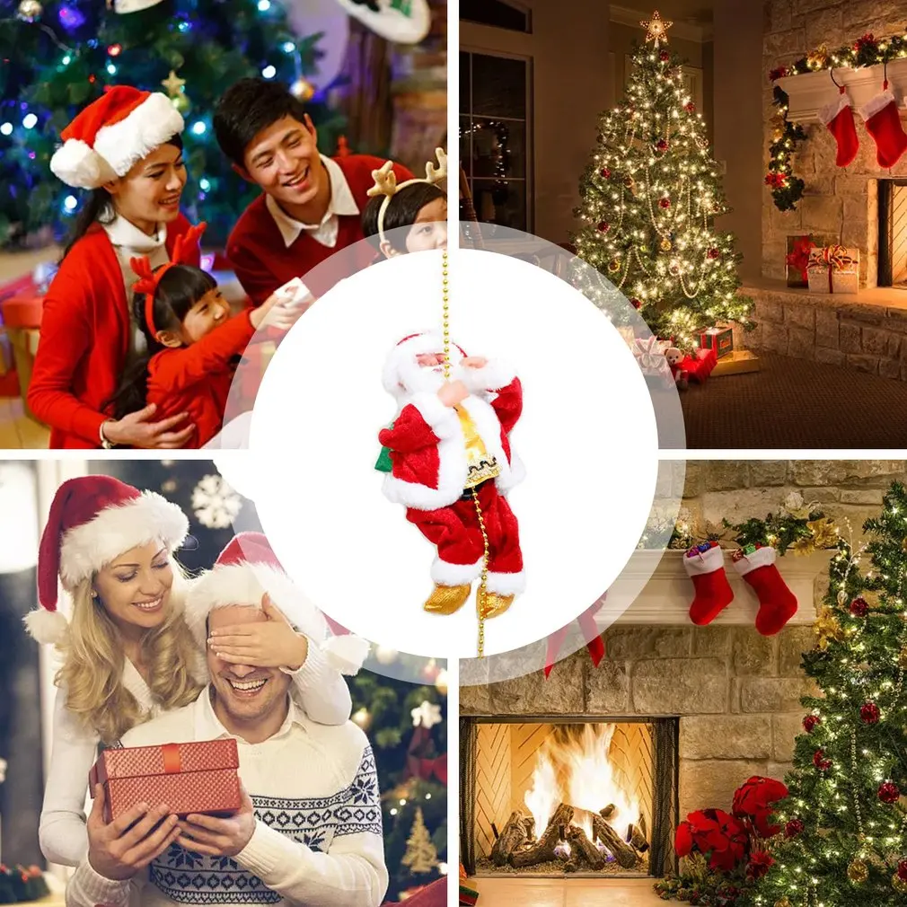 Электрическая кукла скалолазание бусины Санта Клаус музыка электрическая Кукла рождественские украшения Рождественская портативная Кукла рождественские украшения
