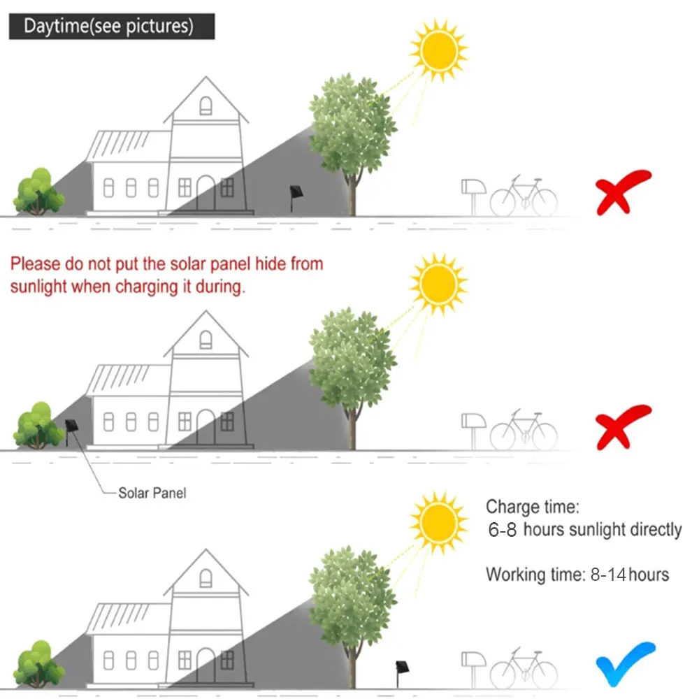2. Убедитесь, что солнечная панель не защищена от солнца, потому что она должна поглощать достаточно энергии от солнца.