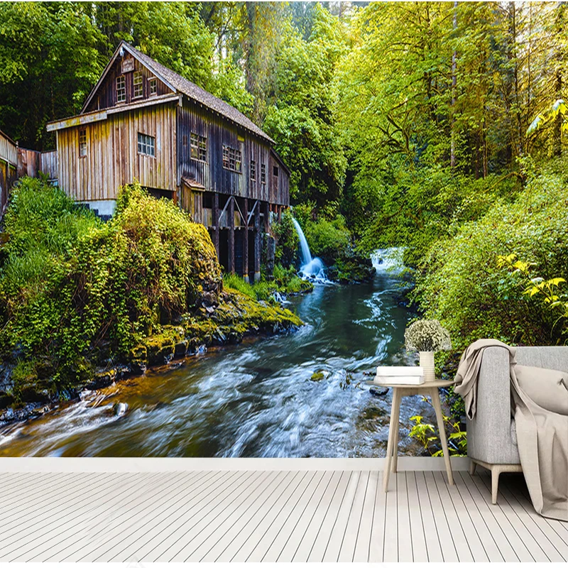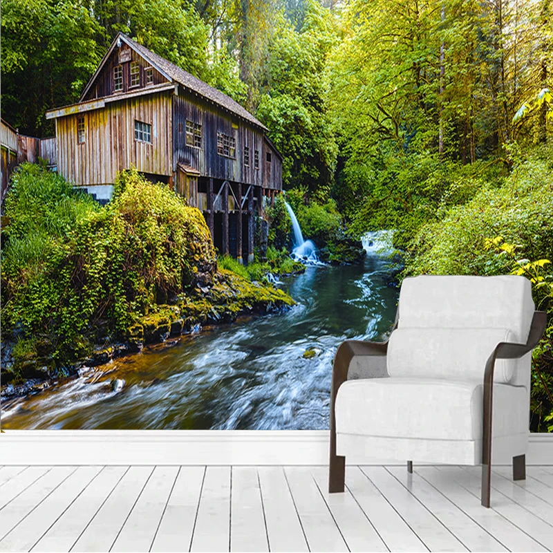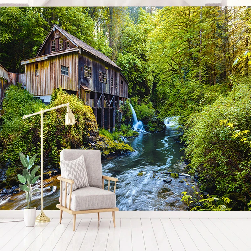 Фотообои на заказ, настенная 3D ткань с имитацией леса и водопада, для кабинета, гостиной, фона для телевизора, 3D украшение для дома