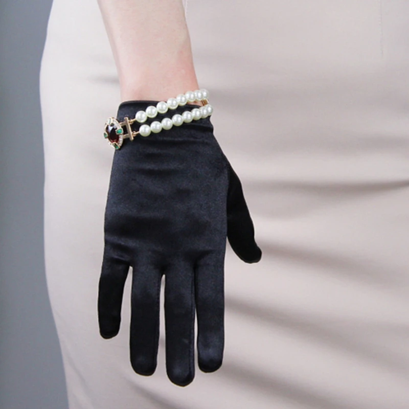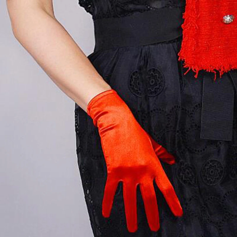 Женская эластичная шелковая атласная короткая танвечерние Праздничная этикетка, тонкая однотонная теплая перчатка на запястье для вождения, 22 см