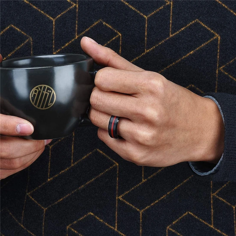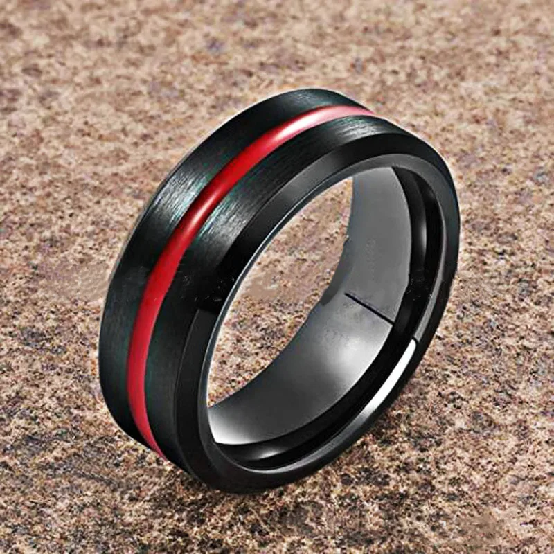 Мужское кольцо из нержавеющей стали с красной стрелкой, 8 мм, кольцо с опалом, инкрустация, кольцо из углеродного волокна с изображением красного дракона для мужчин, обручальное кольцо