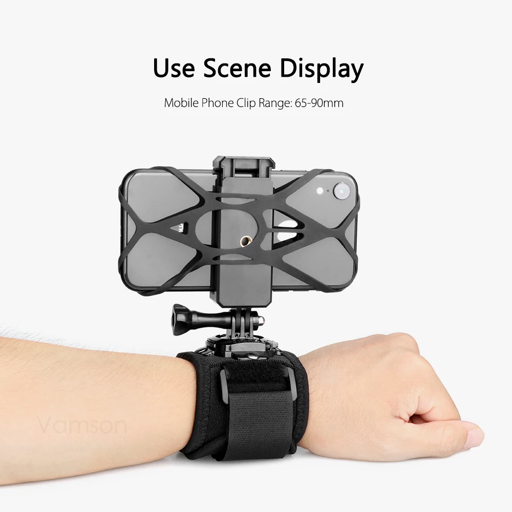 Аксессуары для камеры Vamson для GoPro Hero 10 9 8 7 вращающийся на 360 градусов браслет с зажимом для телефона для iPhone 13 Xiaomi Samsung
