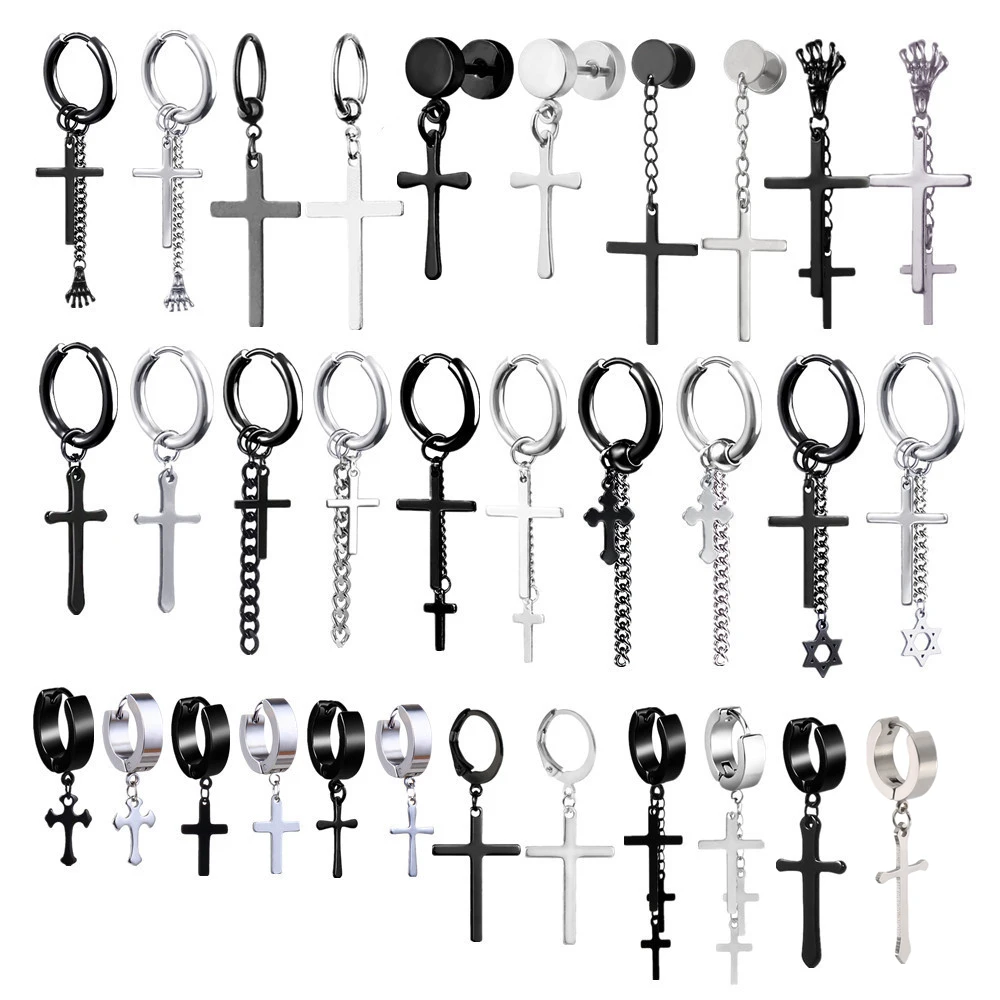 Мужские и женские серьги-кольца из нержавеющей стали, Черные Подвески кресты, длинная подвесная цепочка в стиле хип-хоп, ювелирные изделия в стиле Y2k, аксессуары, серьги, 2021