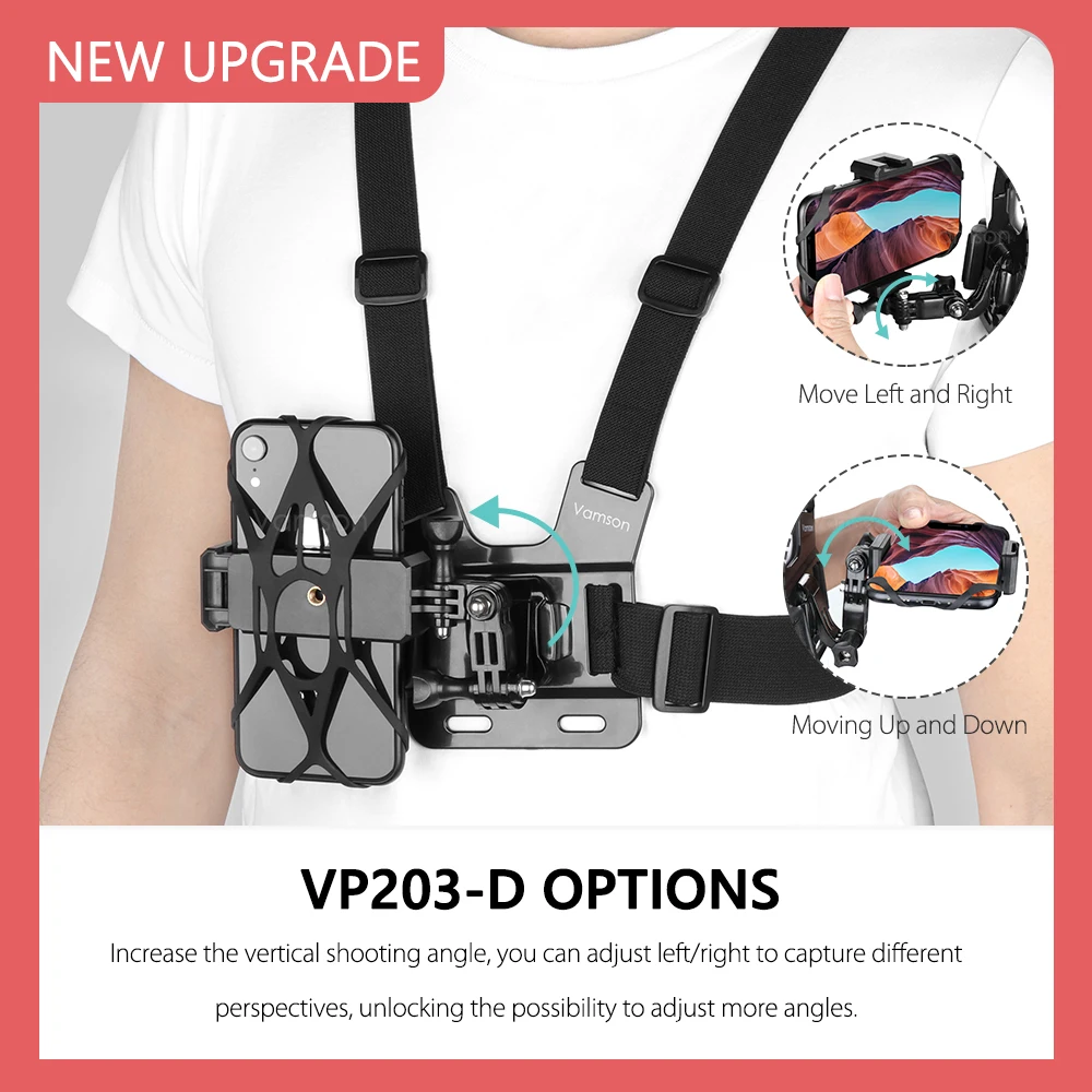 Регулируемый зажим для телефона Vamson для iPhone, Xiaomi, Samsung, Huawei, нагрудный ремень для Gopro Hero 10, 9, 8, 7, Yi, 4K, аксессуары