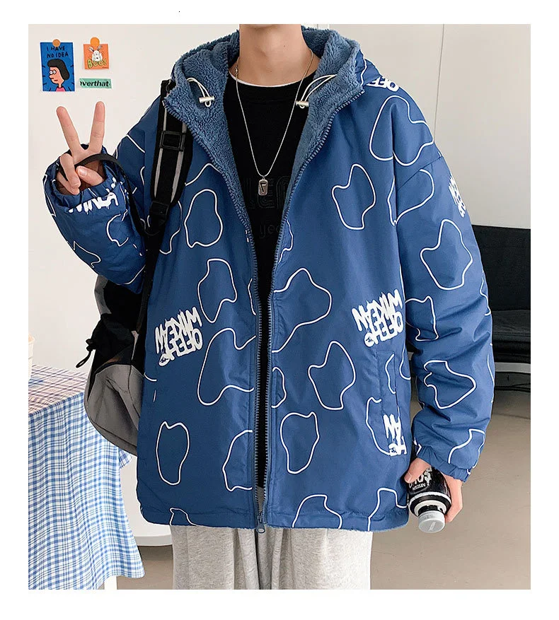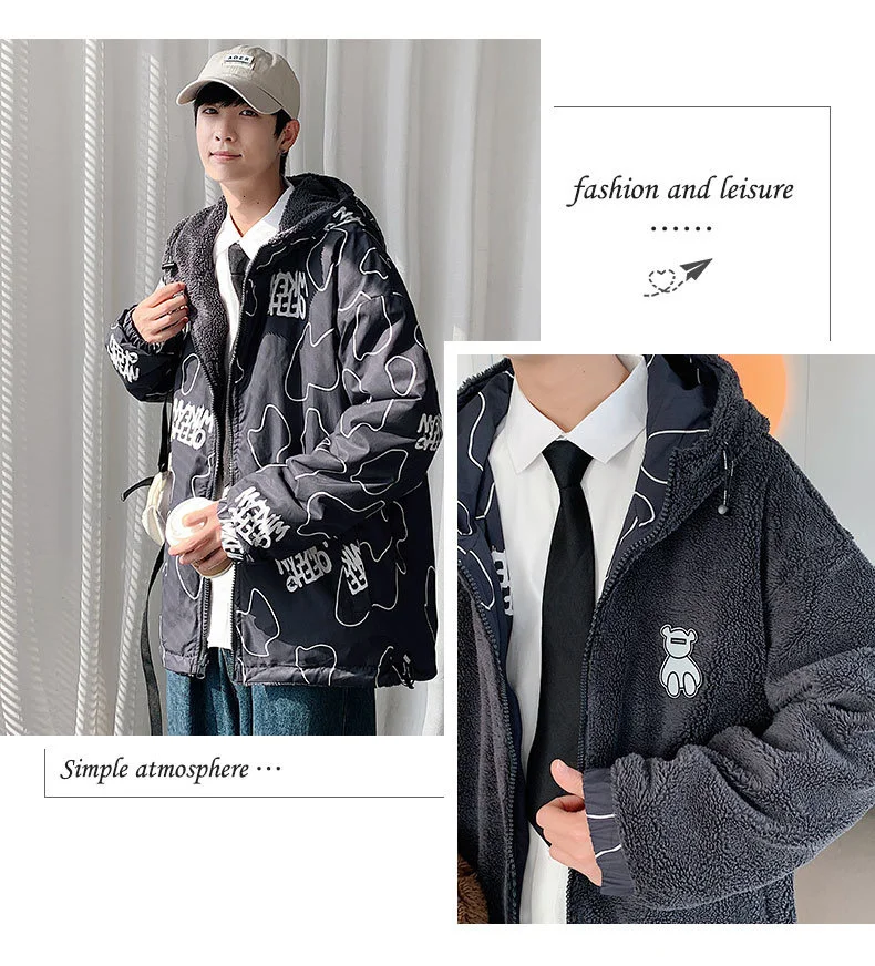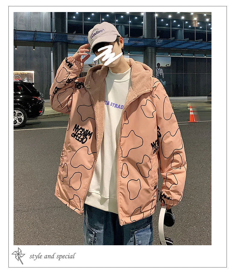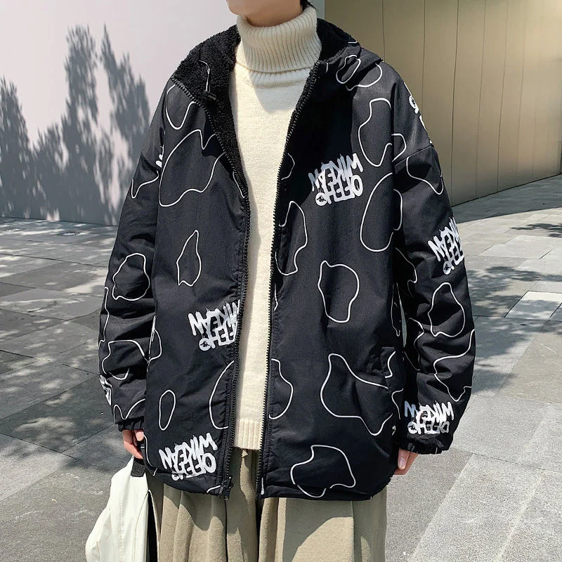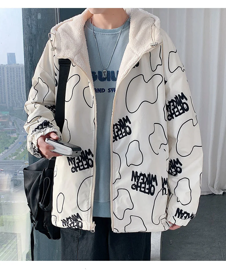 Privathinker Двусторонняя одежда с буквенным принтом, мужские шерстяные куртки из овечьей шерсти, Свободные теплые модные зимние пальто, верхняя одежда на молнии
