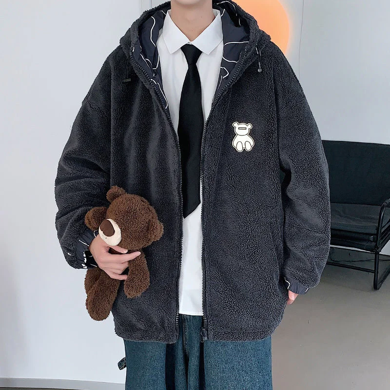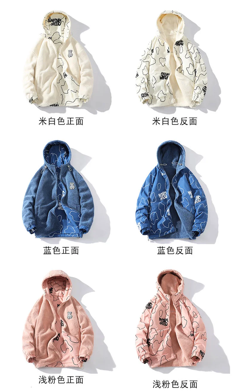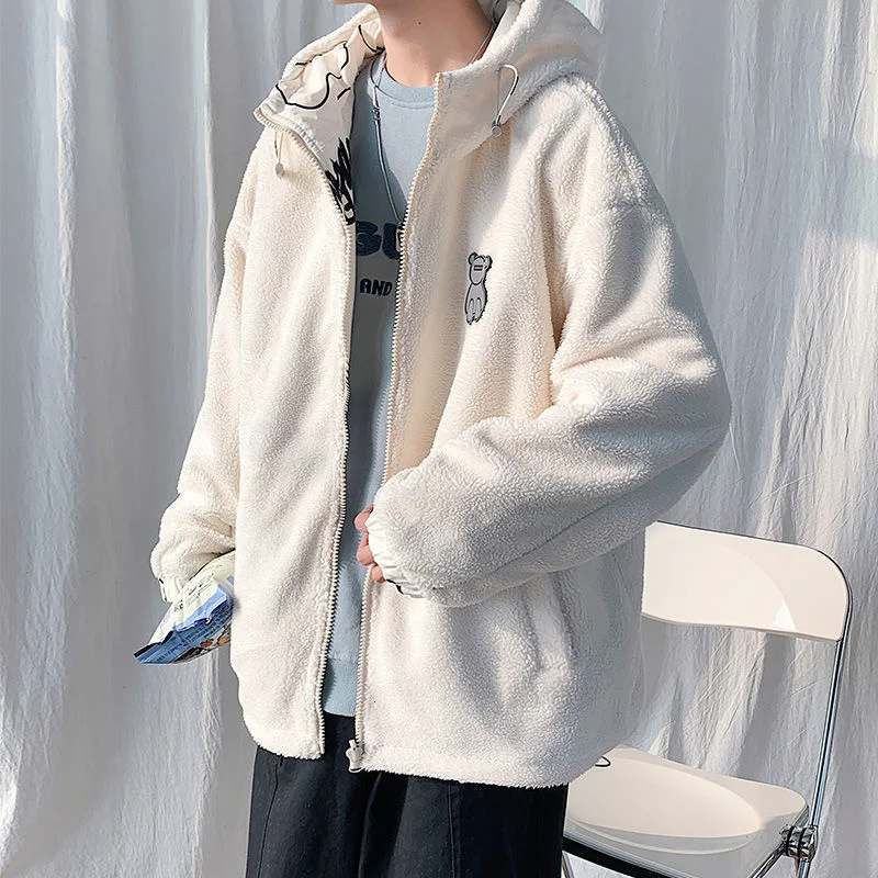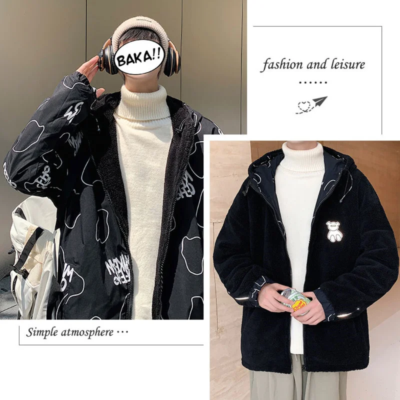 Privathinker Двусторонняя одежда с буквенным принтом, мужские шерстяные куртки из овечьей шерсти, Свободные теплые модные зимние пальто, верхняя одежда на молнии