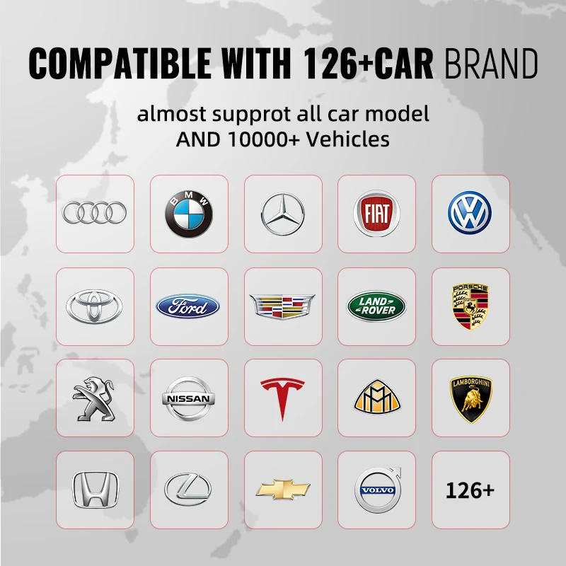 1. Полная система диагностики на весь срок службы бесплатно. Полная система, такая как двигатель, трансмиссия, ABS, SRS, SAS, TPMS, EPB и шасси/корпус/электрическое оборудование и т. д. все время жизни бесплатно и пожизненное бесплатное обновление. Кроме того, CS99 также поддерживает более 126 других марок автомобилей, 29,95 долл. США в год.