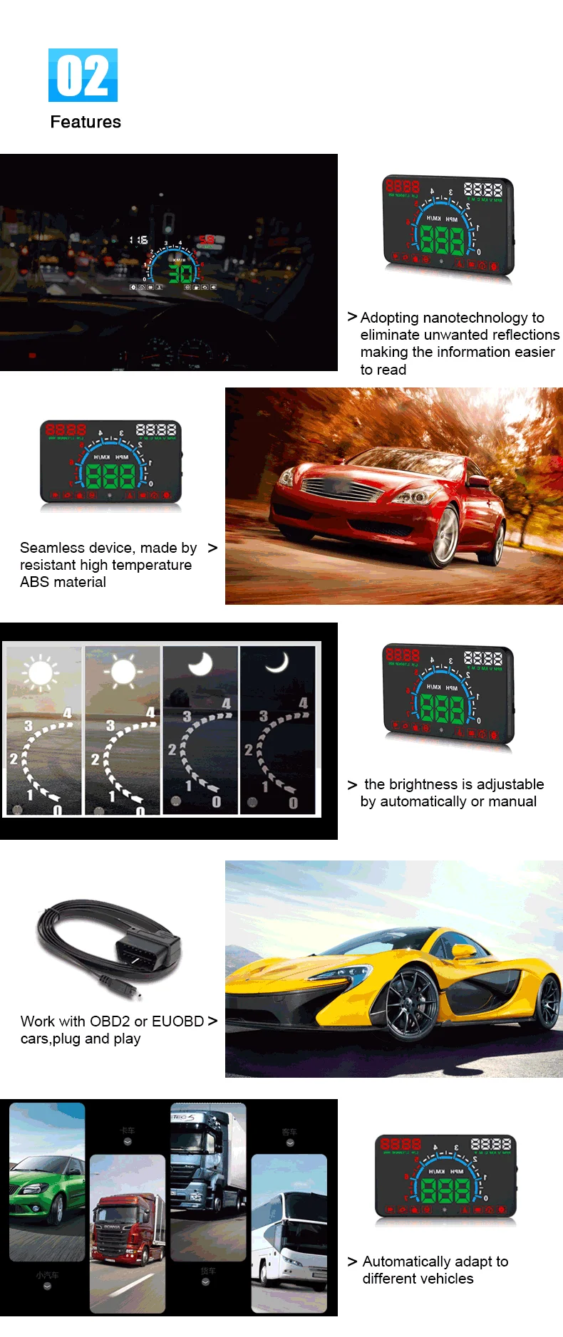 OBD2 модель может работать для OBD2 бензиновых транспортных средств, произведенных после 2004 в США, и OBD2 бензиновых транспортных средств, произведенных после 2008 в других странах.1. OBD2 / OBDII интерфейс HUD:A. Подходит для автомобилей Северной Америки, он может быть применен только к автомобилям с интерфейсом OBD2, изготовленным после 2004. Для Азии, он может быть использован для автомобилей с интерфейсом OBD2, изготовленным после 2008B. Не поддерживает автомобили с OBD I и JOBD интерфейсом (японский OBD)2. GPS HUD:GPS Автомобиль HUD поддерживает все автомобили (когда вы не имеете представления о дате интерфейса вашего автомобиля, вы можете выбрать GPS HUD, если вам нужен GPS HUD, пожалуйста, свяжитесь с нами