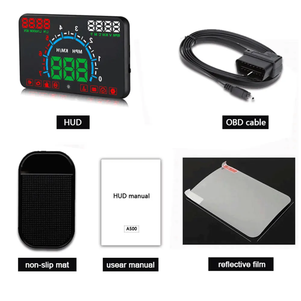 HUD короткий для отображения головы вверх. Он отображает данные вождения на лобовом стекле автомобиля, такие как скорость, об/мин, температура воды, напряжение, один километр и т. д. Избегайте водителей небезопасно из-за наблюдения за прибором во время вождения. Водители могут мгновенно считывать информацию о вождении и всегда держать лучшее состояние на пути с HUD.