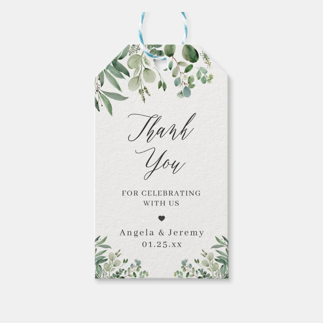 Эвкалипт с листьями на заказ, элегантная зелень, спасибо, бирки сделай сам, подарок на свадьбу, вечеринку, для будущей мамы, бирки с случайным ярким Канатом
