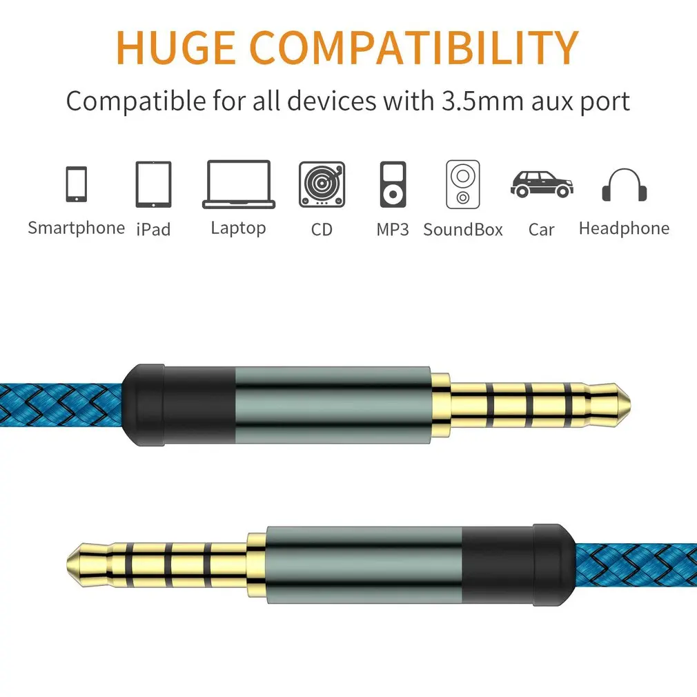 Аудиокабель со штекером 3,5 мм, аудиокабель 3,5 мм, акустический кабель, 4-полюсный нейлоновый плетеный кабель для наушников, автомобильный удлинитель для MP3