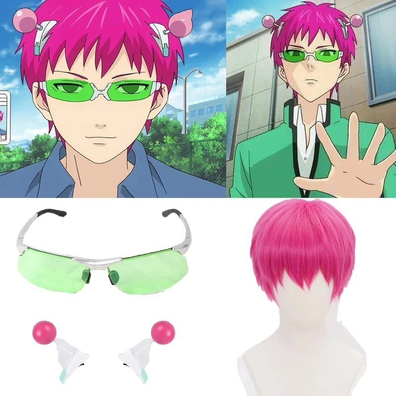 Тяжелая жизнь сайки К. Парик для косплея аниме, очки Saiki Kusuo, Короткие Розовые синтетические волосы, реквизит для вечеринки на Хэллоуин