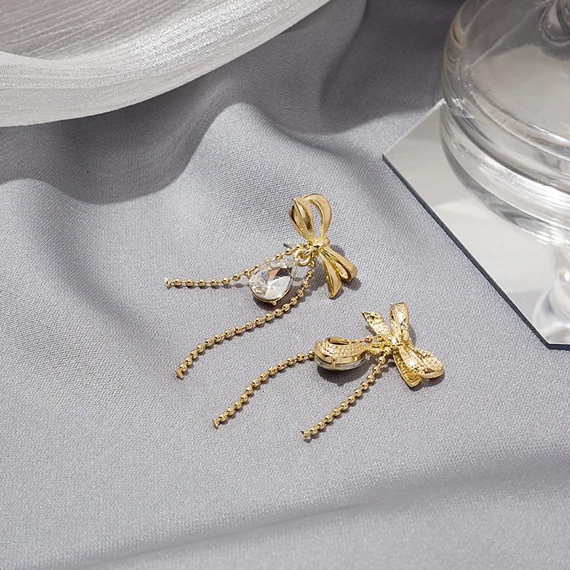 Новинка, Лидер продаж, ювелирные изделия с бантом, инкрустированные цирконами Серьги с кисточками, длинные ювелирные изделия для женщин и девушек, ювелирные изделия для вечеринки, подарок