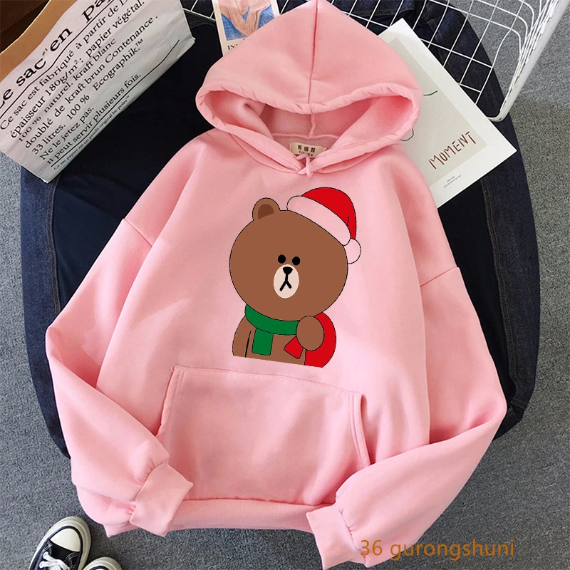Рождественская Толстовка с милым медведем, женская одежда с милым мультяшным медведем, свитшот с длинным рукавом в стиле Харадзюку, топы