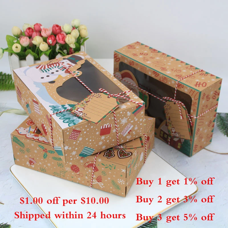 Коробки для рождественского печенья, из крафт-бумаги, с прозрачным ...