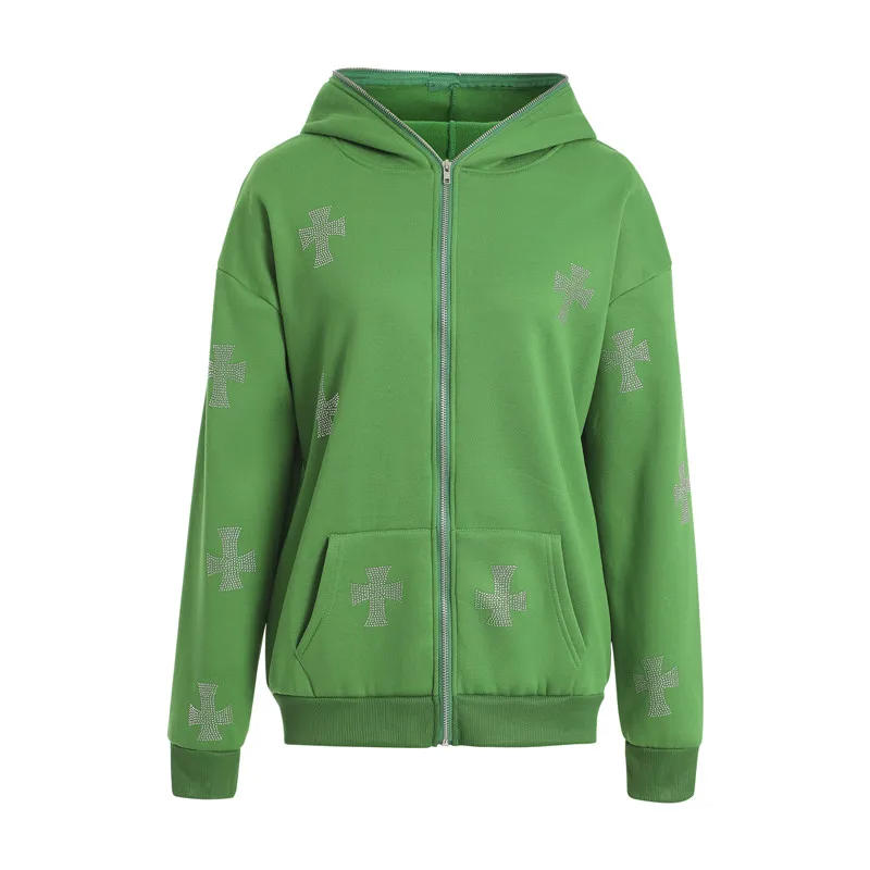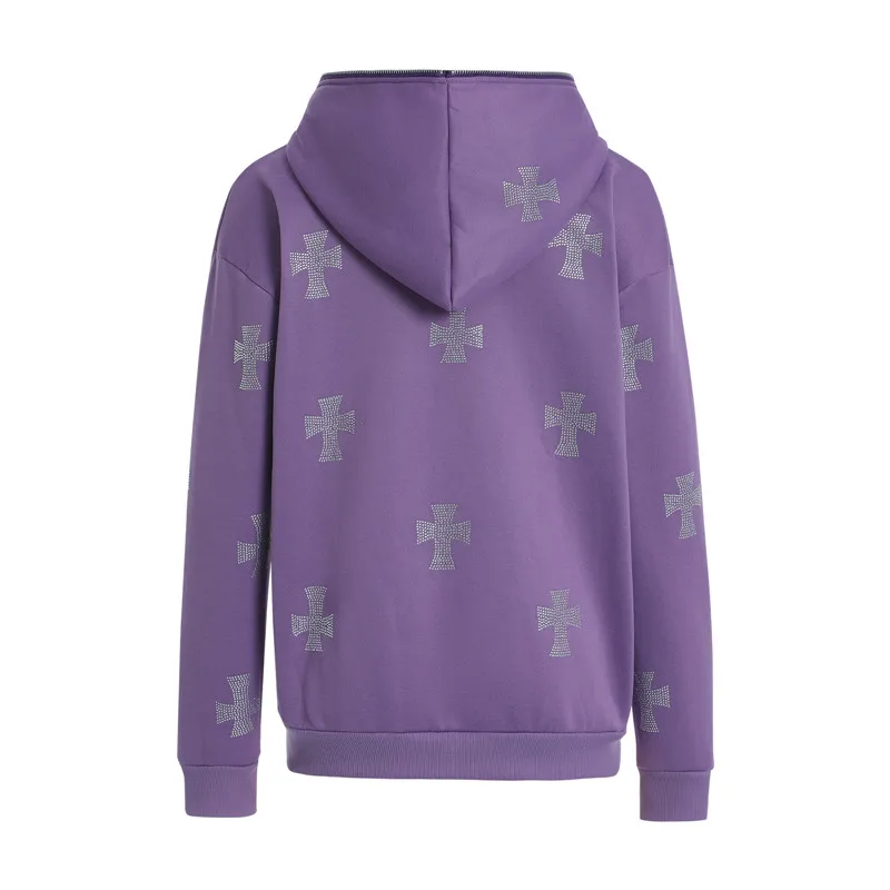 Худи Xingqing Стразы с перекрестной молнией оверсайз в эстетике гранж уличная одежда для женщин в Интернете Y2k Свитеры Толстовки с капюшоном топы