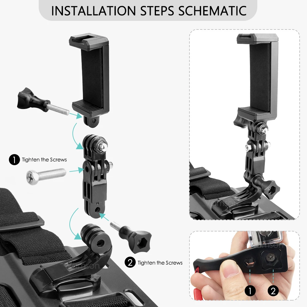 1. Универсальная нить в нижней части может быть подключена к любым обычным фитингам.Например: штатив/монопод, повязка на голову, нагрудный ремень, ремешок на руку и т. Д.2. С портом горячего башмака, вы можете установить заполняющий светильник, микрофон и т. д., подходит для фото заполняющий светильник, ночной спортивной съемки и других сцен.