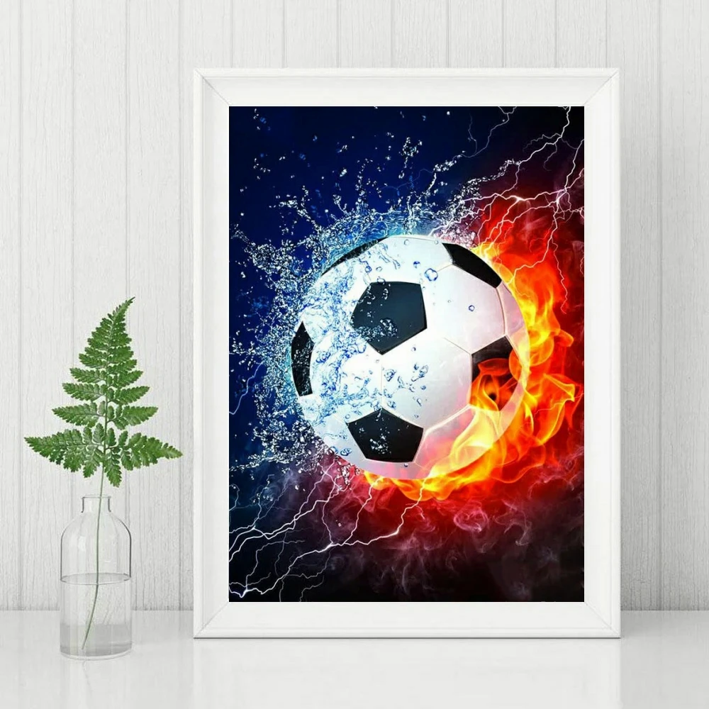 Алмазная 5D картина сделай сам с изображением футбольного мяча из воды и пламени, Набор для вышивки крестиком из квадратныхкруглых страз, домашний декор, мозаика Стразы