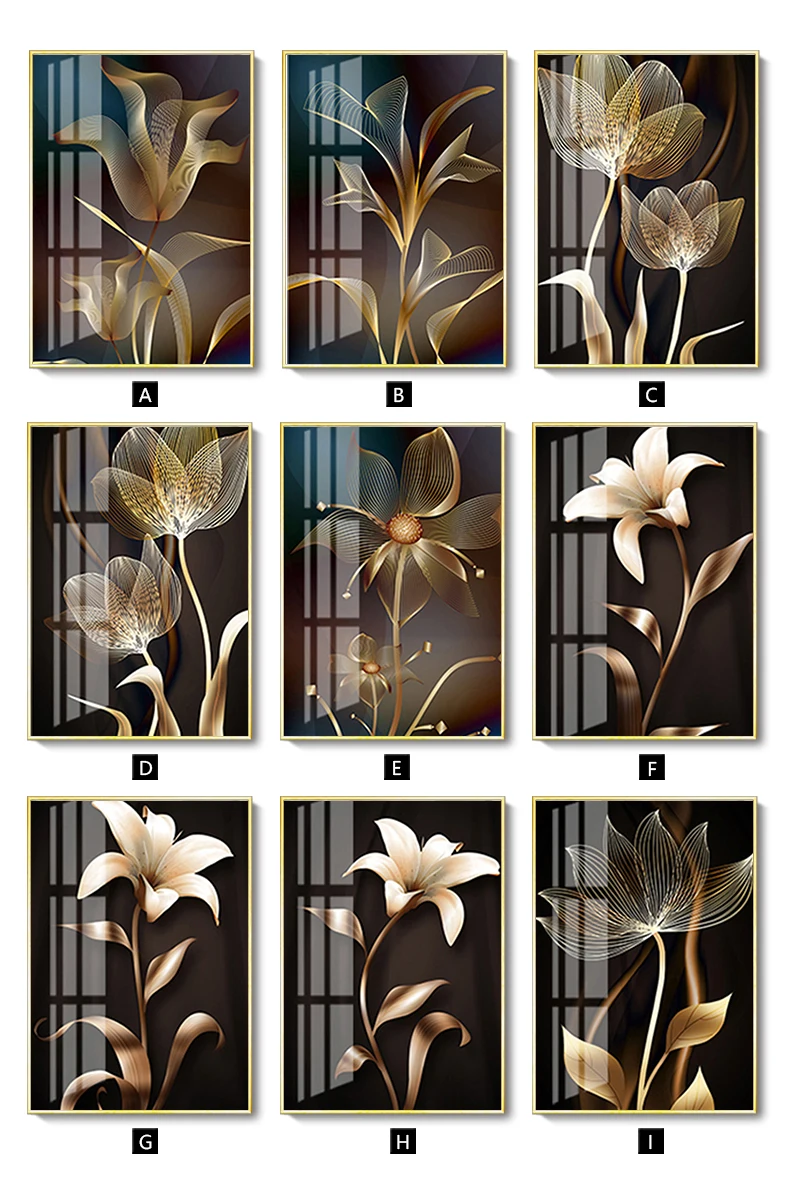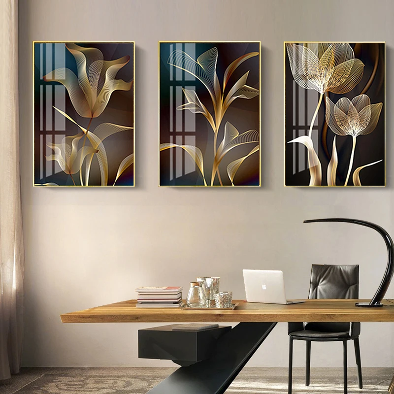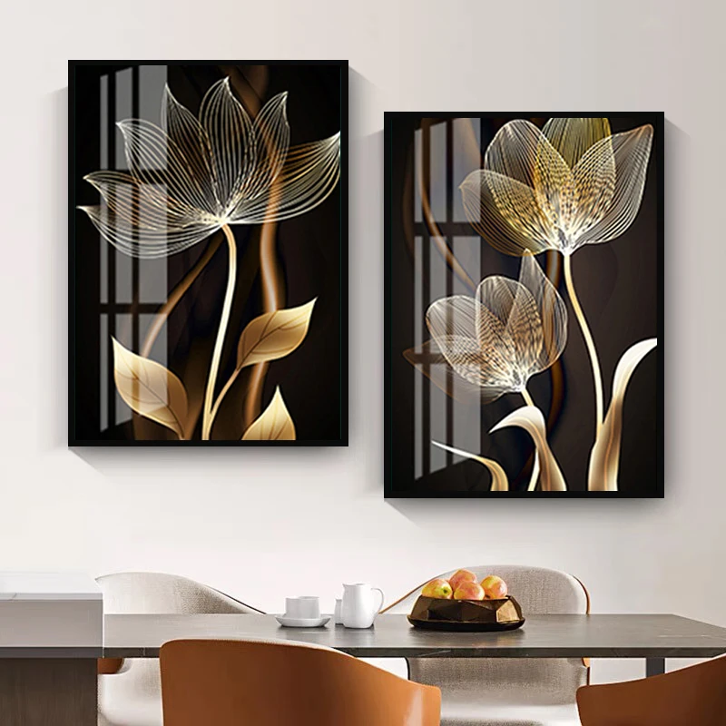 Постер на холсте с изображением золотых и черных цветов, роскошный современный абстрактный настенный рисунок с изображением листьев растений, для украшения гостиной